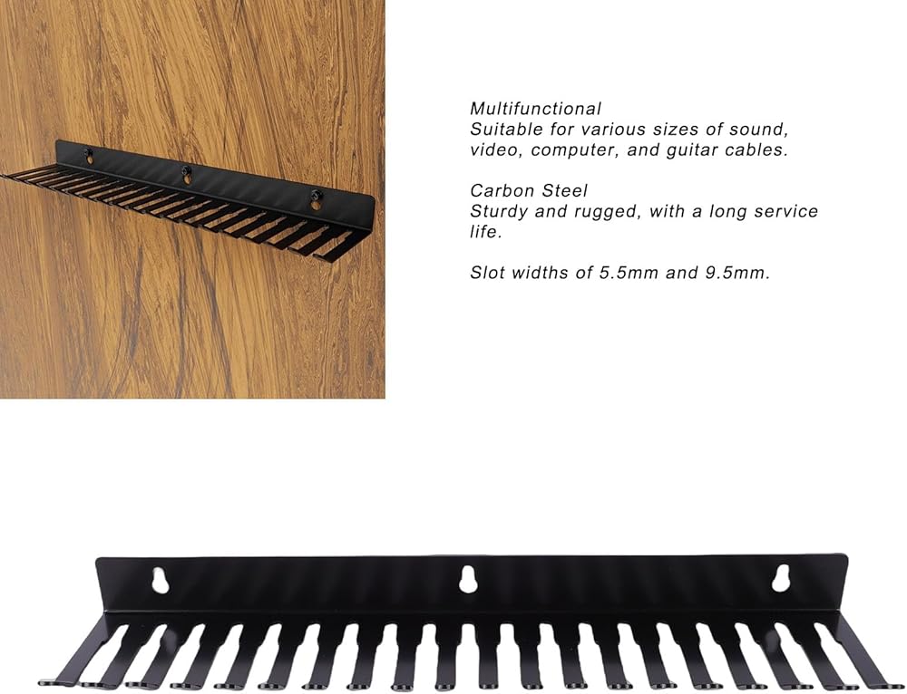 [Versatile Cable Compatibility] The cable organization rack features slots measuring 5.5mm and 9.5mm accommodating a wide variety of cables including guitar computer music xlr and wider cables. this versatility makes it ideal for musicians it professionals and audiovisual technicians who need a reliable solution for managing multiple cable types.