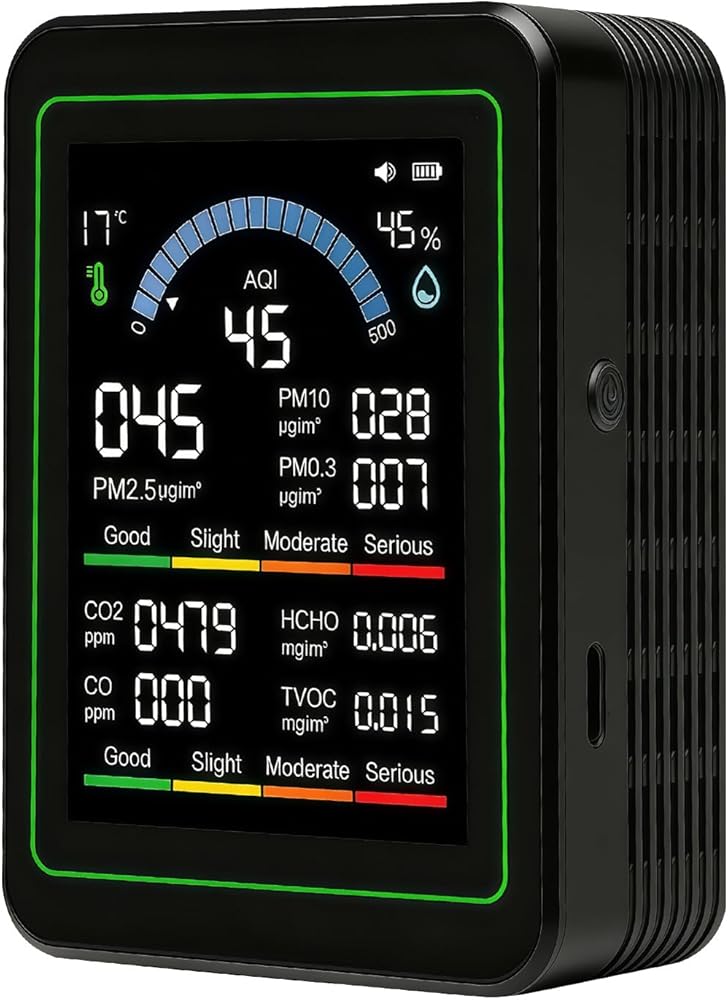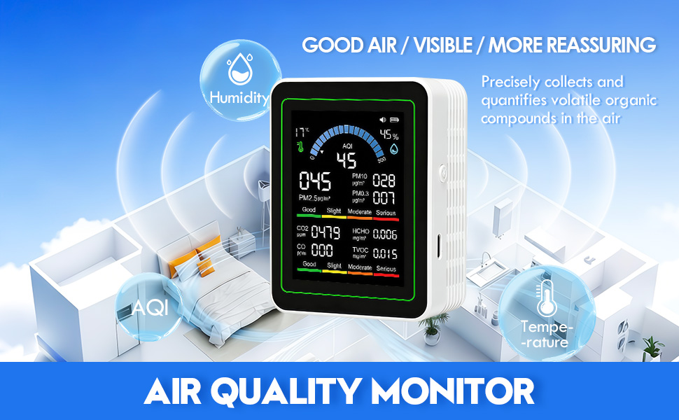 • يتميز هذا الجهاز بمستشعر دقيق عالي الأداء وشريحة متقدمة تعرض جودة الهواء بوضوح، وتغطي بشكل شامل طرق الكشف البيئية المتعددة، كما تشتمل شاشة Air Monitor أيضًا على مستشعر كيميائي عالي الدقة لمراقبة الفورمالديهايد والمركبات العضوية المتطايرة الإجمالية (TVOC)، مما يوفر تقارير بيانات دقيقة لراحة البال