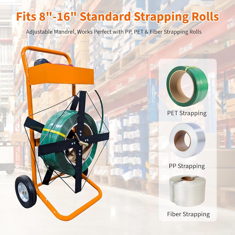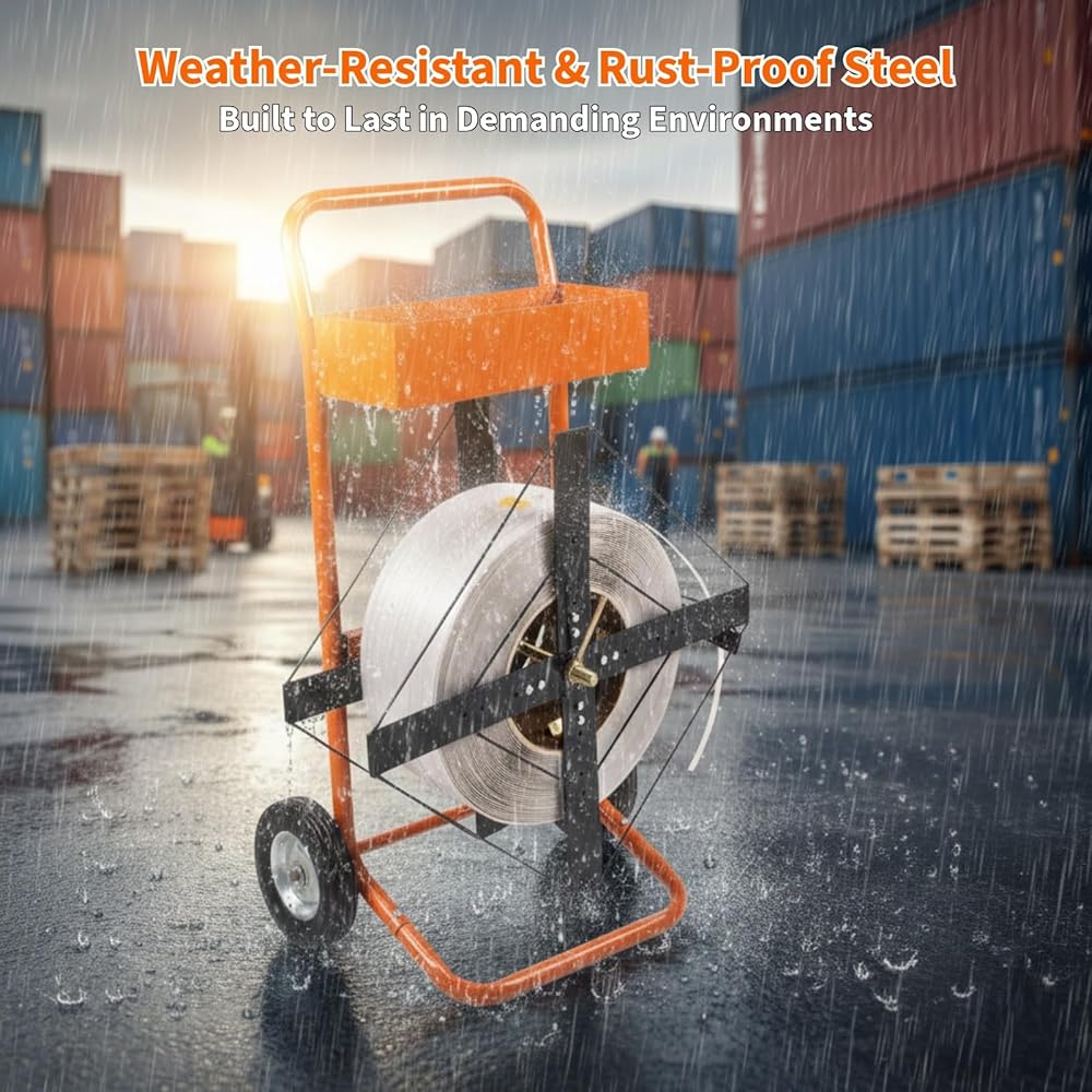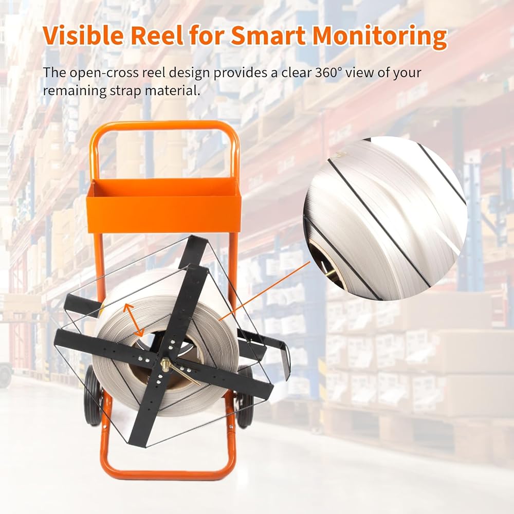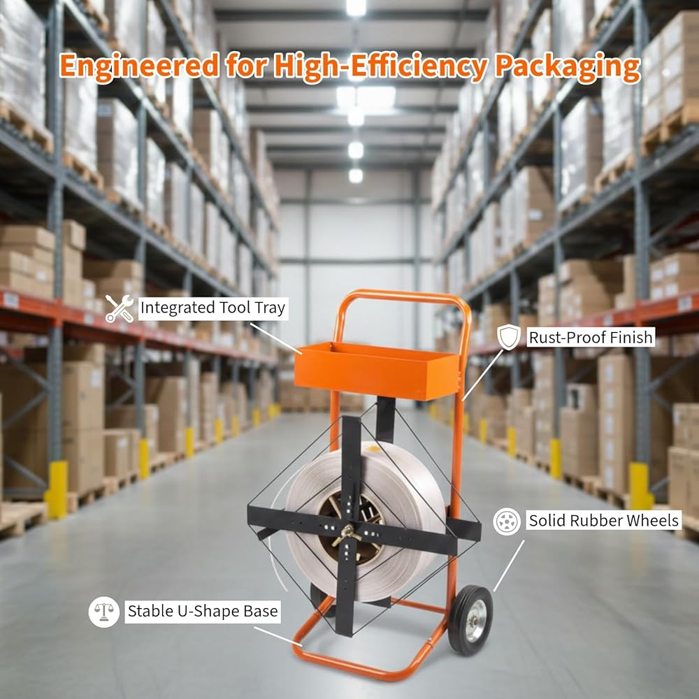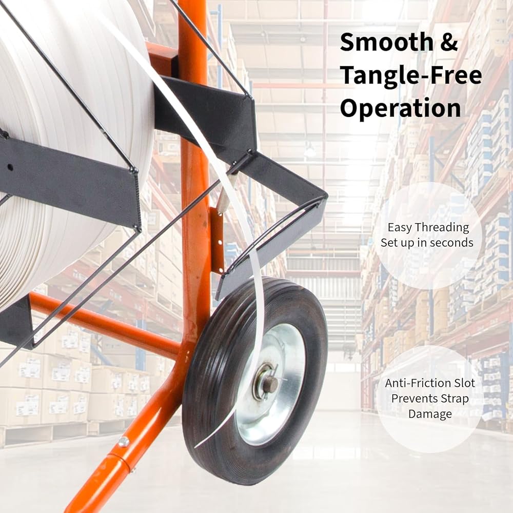 【Smooth Operation & Easy Assembly】Designed for manual operation with a focus on smooth strap feeding to prevent tangling. The cart is easy to assemble with included instructions. Note: This is a standard heavy-duty model without a brake system, optimized for continuous dispensing workflows.