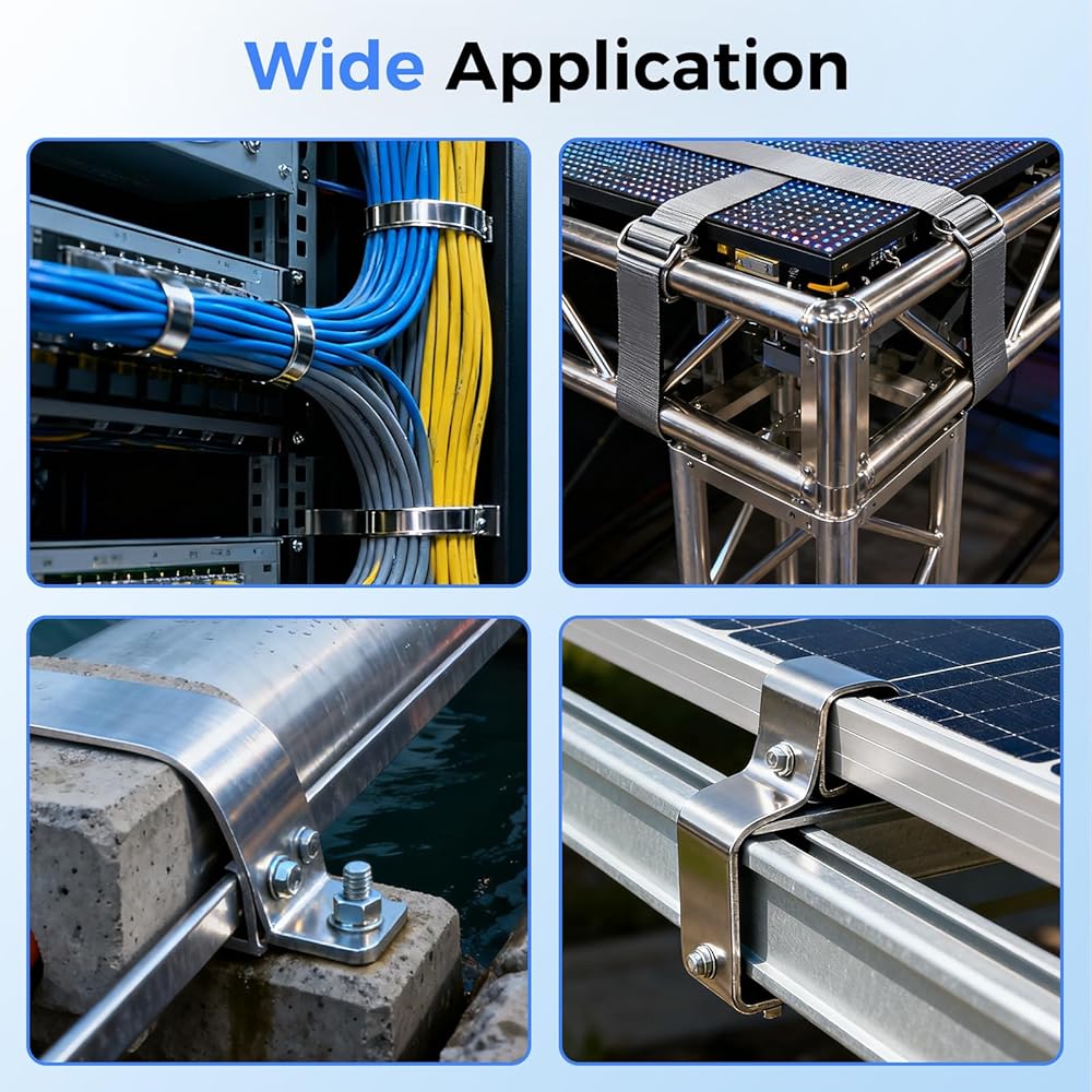 مادة متينة: مصنوعة من الفولاذ المقاوم للصدأ 304 مع لمسة نهائية مصقولة. السطح الأملس يقاوم الصدأ ويوفر ملف شريط الربط مقاومة للتآكل من أجل التشغيل الآمن.
