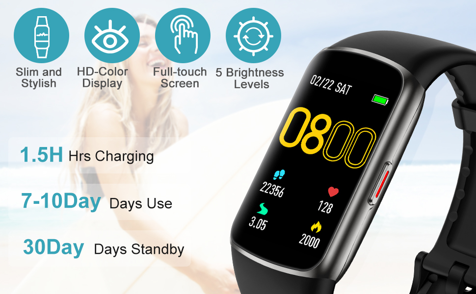 مراقب الصحة المتقدم على مدار الساعة طوال أيام الأسبوع: يدعم جهاز تتبع اللياقة البدنية معدل ضربات القلب الديناميكي في الوقت الحقيقي، وأكسجين الدم، وبيانات تتبع درجة الحرارة عبر البلوتوث. أجهزة تتبع النشاط واللياقة البدنية مزودة بمستشعر عالي الدقة لمراقبة النوم، يمكن لجهاز تتبع النوم هذا مراقبة جودة النوم بدقة، ويقيس تلقائيًا وقت نومك، وأوقات الاستيقاظ، والنوم الخفيف والعميق، ثم مراجعة جودة نومك ومدته في التطبيق. يرجى ملاحظة أن البيانات يجب أن تكون مرجعية فقط ولا تحل محل نصيحة الطبيب