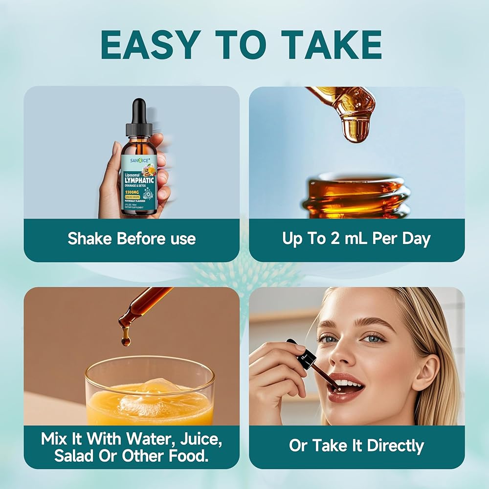 امتصاص عالي: لتعزيز امتصاص الجسم وتحسين كفاءة عمل الجهاز اللمفاوي، قمنا بصياغة مكمل التصريف اللمفاوي هذا في شكل سائل. هناك حاجة إلى 2 مل فقط لتزويد الطاقة التي يحتاجها الجهاز اللمفاوي ليوم كامل. خذ قطرات التصريف اللمفاوي مباشرة تحت اللسان أو امزجها مع الماء أو العصير أو القهوة أو مشروبك المفضل