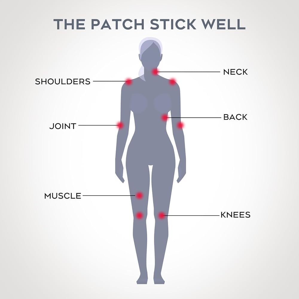 • خالية من الأدوية بنسبة 100%: تمتص الرقعة إشارات الألم من الجسم قبل أن تنبه الدماغ، مما يقلل من استجابة الألم ويساعد الجسم على العودة إلى حالة أكثر توازناً.