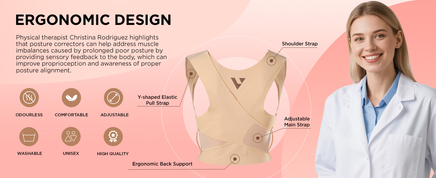 يدعم وضعية أفضل بشكل طبيعي: أحزمة مزدوجة على شكل حرف Y مع تصميم جر على شكل X وقضيبين دعم مرنين مدمجين يسحبان كتفيك إلى الخلف بلطف. يساعد على تحسين الترهل والأكتاف المستديرة ووضعية الرأس الأمامية والحدبة وغيرها من مشاكل الوضعية، مع تقليل التوتر في الجزء العلوي من الظهر والكتفين والرقبة الناتج عن الجلوس لفترات طويلة أو أوضاع الرأس المنخفضة.