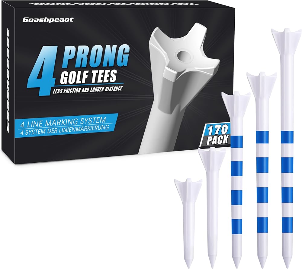 170 قطعة من تي شيرتات الجولف ذات الأداء الاحترافي - رأس ذو 4 شقوق يقلل من الدوران الجانبي | 5 مقاسات من قمصان الجولف البلاستيكية المختلطة (4 بوصات / 3¼ بوصة / 2¾ بوصة / 2⅛ بوصة / 1½ بوصة) لأقصى مسافة وتحكم