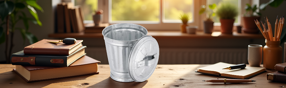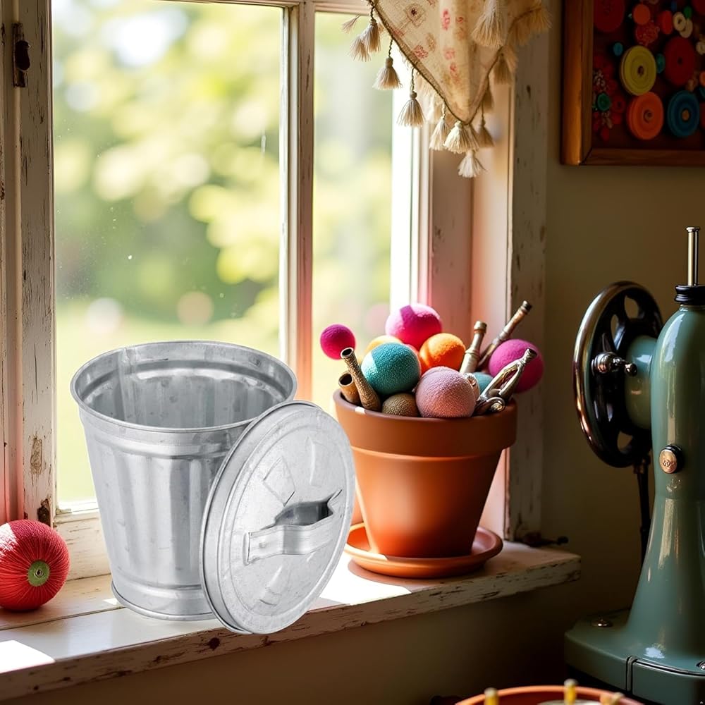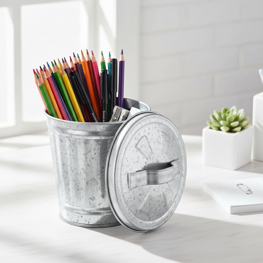 تصميم متعدد الاستخدامات: سلة مهملات معدنية مجلفنة صغيرة يمكن استخدامها كوعاء زهور مزخرف أو حامل أقلام لمكتبك أو سطح الطاولة
