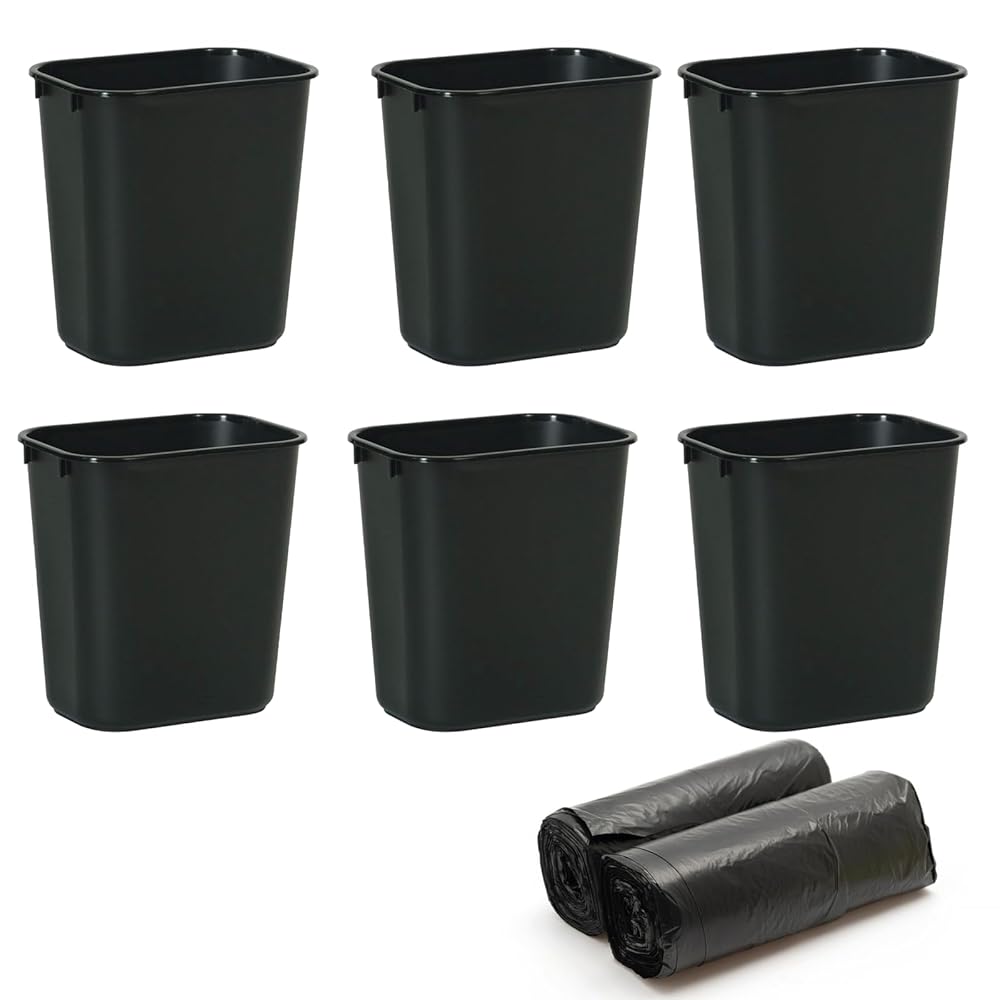 【Complete Value Bundle- Ready to Use with Liners Included] Get everything you need in one purchase: 6 durable black small trash cans come with 2 rolls of matching trash bags. This perfect combination eliminates the need for separate bag purchases, offering exceptional value for homes, offices, and any multi-room setup requiring discreet, functional waste disposal.