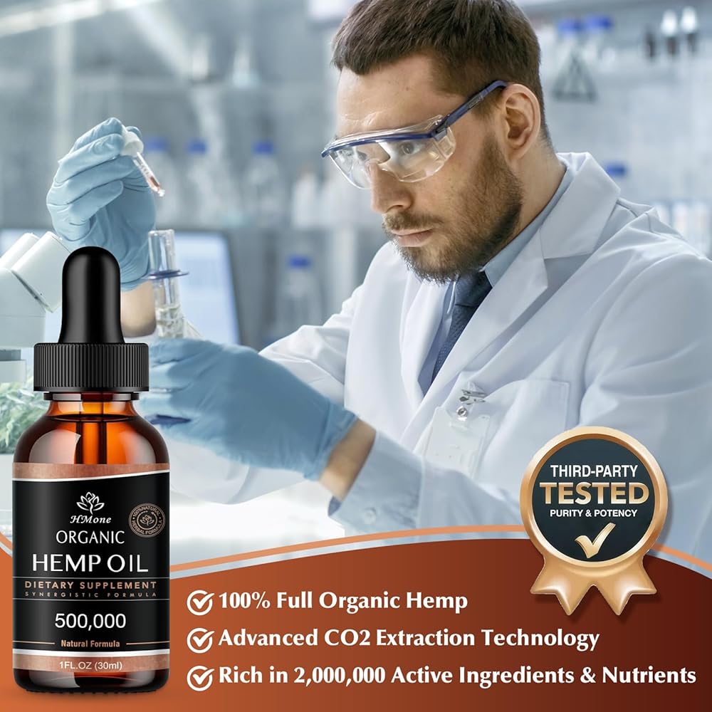 عبوتان من قطرات زيت القنب لتخفيف الألم والجلد والنوم والقلق - صبغة قنب عضوية عالية الفعالية وقوة عالية - مع مستخلص C02، نباتي، غير معدّل وراثيًا