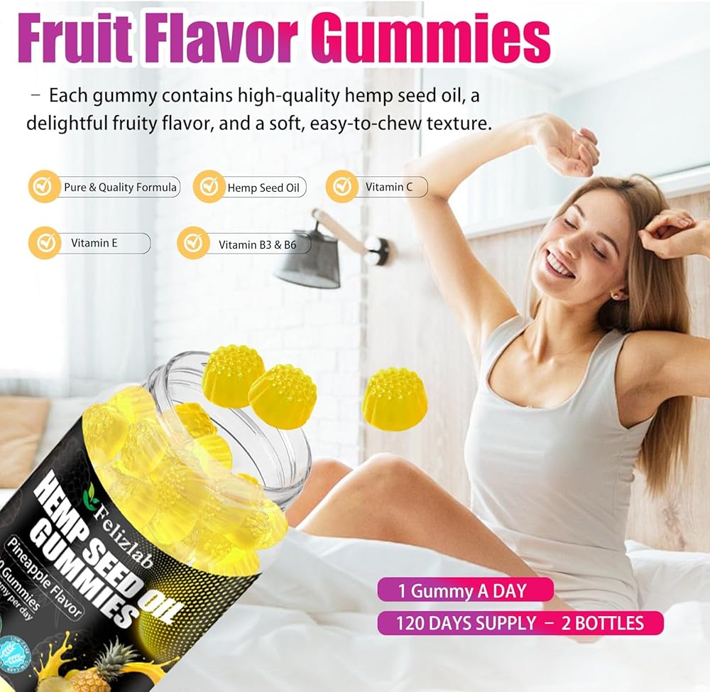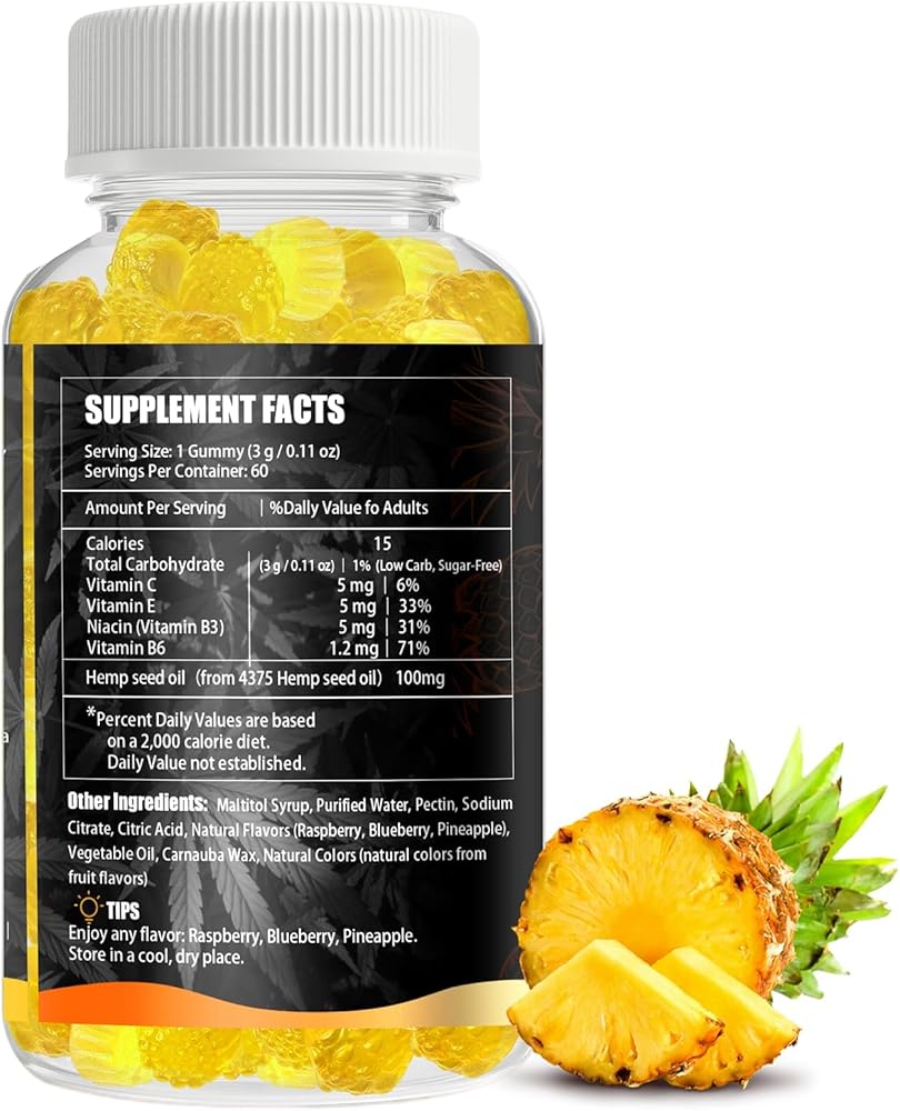 علكات القنب للقلق من آلام النوم - 120 قطعة من مستخلص زيت القنب الطبيعي النباتي مع أوميغا وفيتامين ب للاسترخاء والسلام - على شكل توت العليق (نكهة الأناناس)
