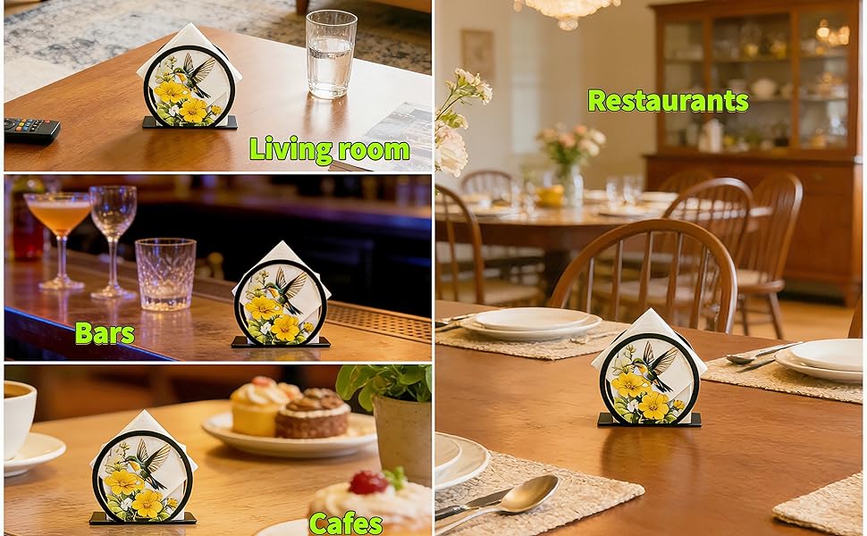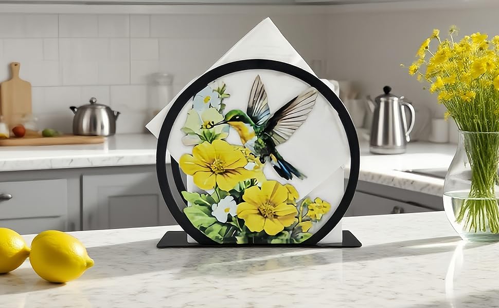 • 【عمل فني جميل للطائر الطنان】 اجعل طاولتك مشرقة مع الطيور الطنانة المذهلة المطبوعة بالأشعة فوق البنفسجية! الألوان النابضة بالحياة لن تبهت، مما يجعلها حامل مناديل عملي وقطعة فنية جدارية مبهجة لطاولتك.