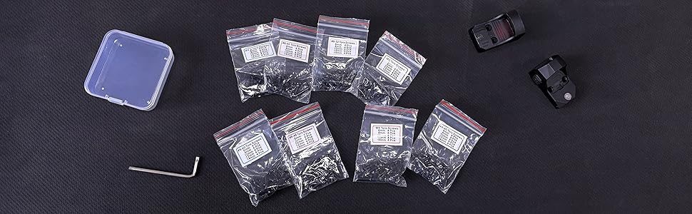 - مسامير M3، M3.5، M4، #4-40، #6-40، #8-40، #6-32، #6-48 بطول 6 مم، 8 مم، 10 مم، 12 مم و14 مم.