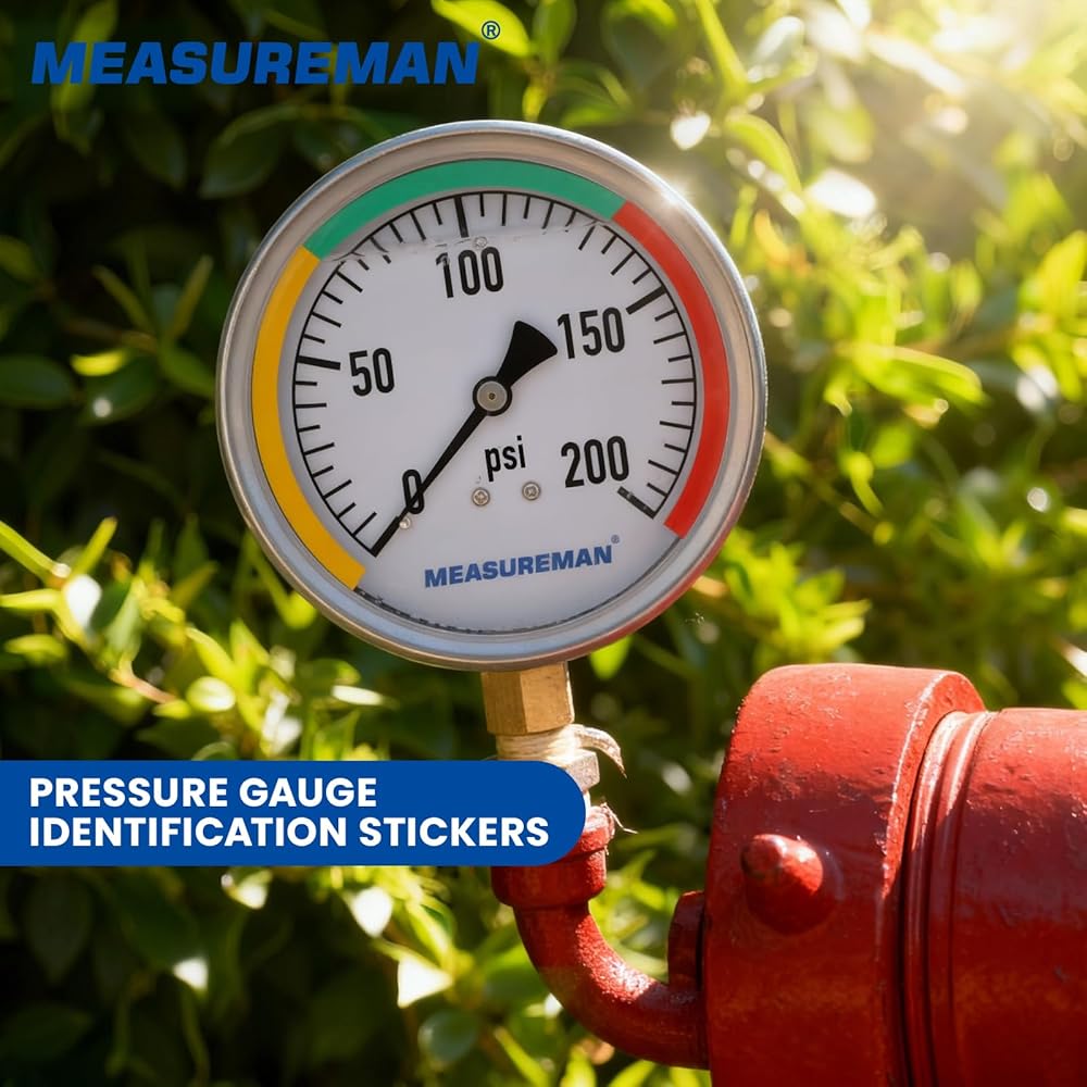 MEASUREMAN pressure gauge identification labels come in 12 precise sizes (10cm to 2.5cm / 3.9in to 1.0in) and support easy trimming, making them perfectly compatible with all types of pressure gauges. Constructed from highly reflective and fully waterproof material with strong self-adhesive backing, the labels remain clearly visible and securely attached even in harsh working conditions. The core design scientifically divides the gauge face into three distinct color-coded warning zones: Normal, High Pressure, and Low Pressure, enabling instant recognition of pressure status, greatly improving equipment monitoring efficiency and operational safety.