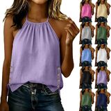 Women's Cotton Linen Sleeveless Halter Cami Top