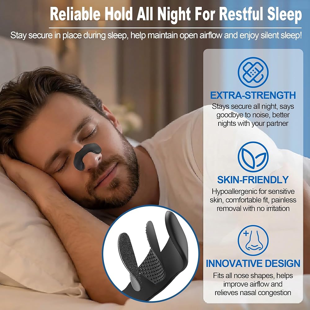 قوة إضافية طوال الليل - يساعد اللاصق القوي على بقاء الشريط في مكانه بشكل آمن طوال الليل، حتى إذا تحركت أثناء النوم. تم تصميم شرائط الأنف هذه المخصصة للشخير لتوفير دعم ثابت للأنف لتحسين تدفق الهواء وتعزيز النوم المريح دون ضوضاء مزعجة.