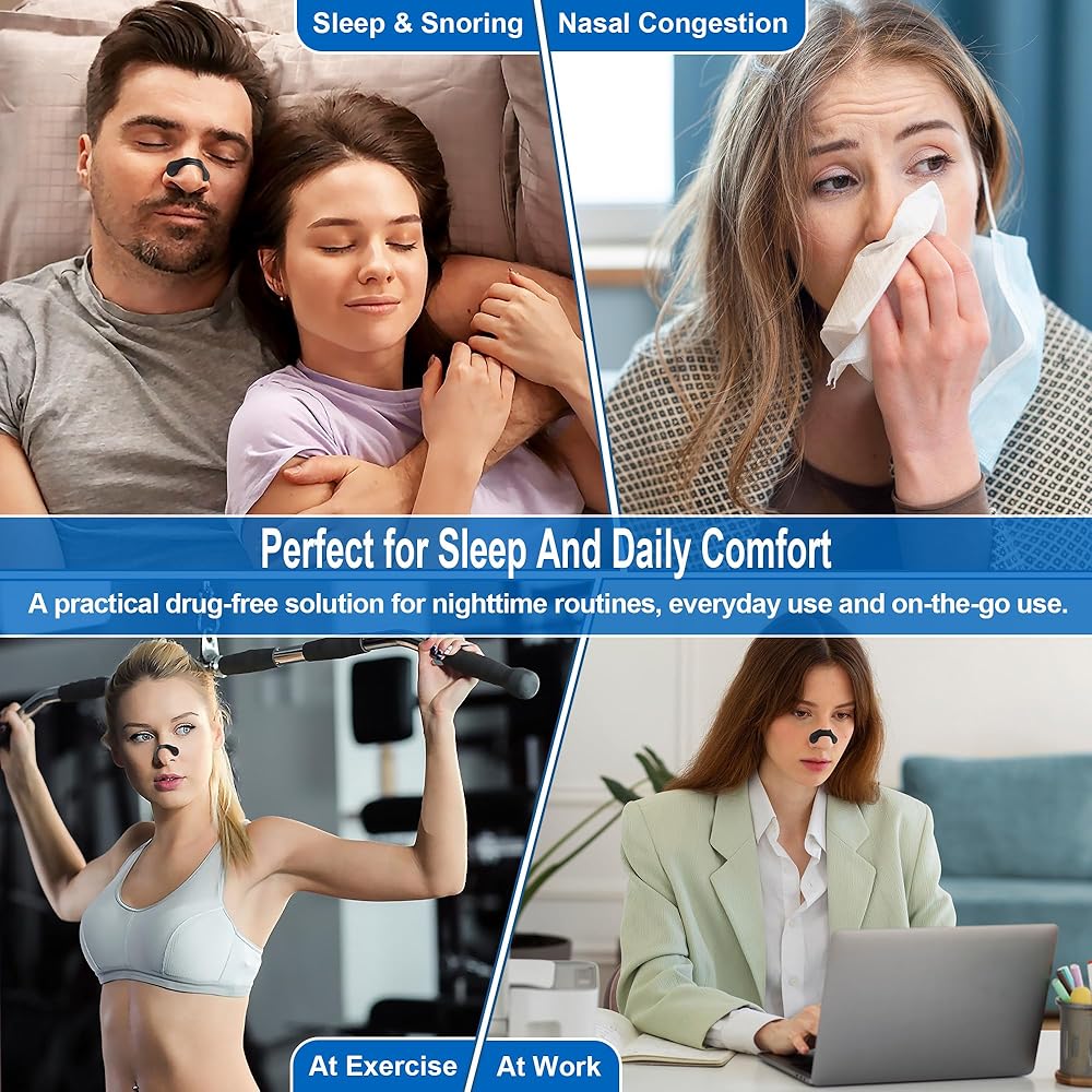 تدعم التنفس بسهولة - ترفع شرائط الأنف هذه بلطف وتفتح الأنف لزيادة تدفق الهواء وتساعدك على التنفس بشكل أسهل طوال الليل من أجل نوم أعمق وأكثر راحة. طريقة بسيطة خالية من الأدوية لتخفيف احتقان الأنف الناجم عن نزلات البرد أو الحساسية ودعم التنفس بشكل أكثر سلاسة.