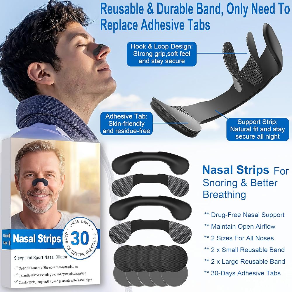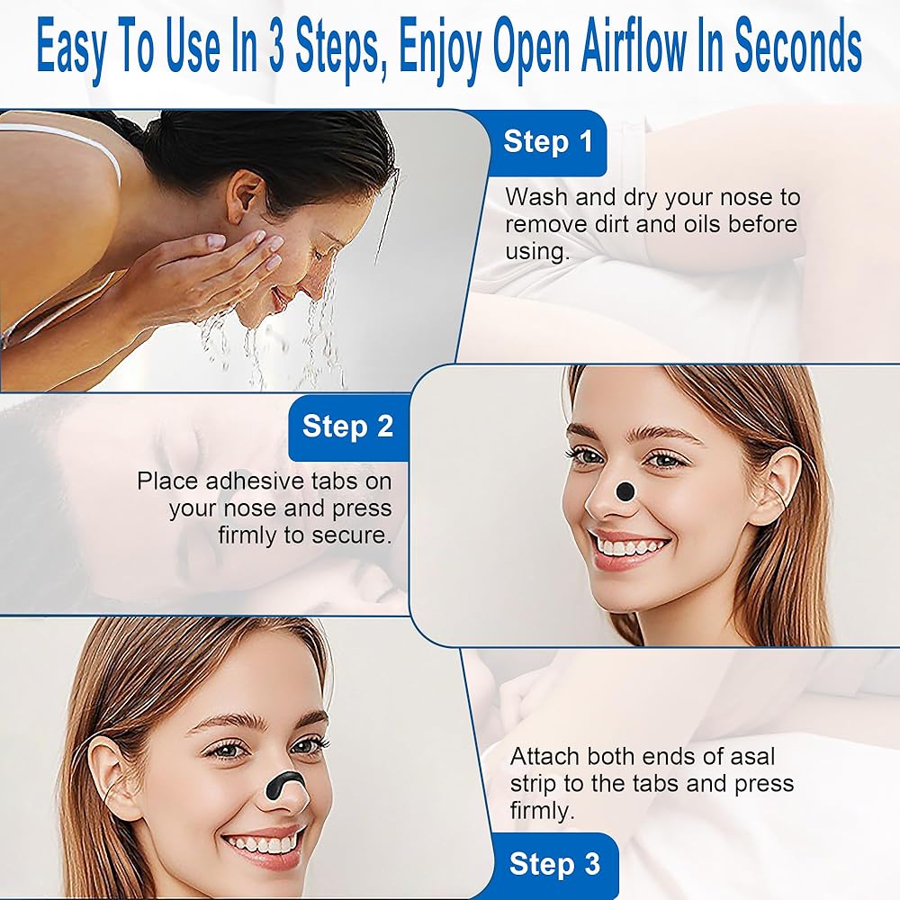 مجموعة كاملة سهلة الاستخدام - تتضمن 4 أشرطة دعم مختلفة الحجم قابلة لإعادة الاستخدام و30 زوجًا من العروات اللاصقة، مما يتيح لك العثور على الملاءمة والدعم المثاليين. ما عليك سوى تنظيف وتجفيف أنفك لإزالة الزيوت، وتطبيق علامات التبويب وشريط الدعم عبر الضوء والاستمتاع بتدفق هواء أكثر سلاسة في ثوانٍ ونوم أكثر هدوءًا طوال الليل.