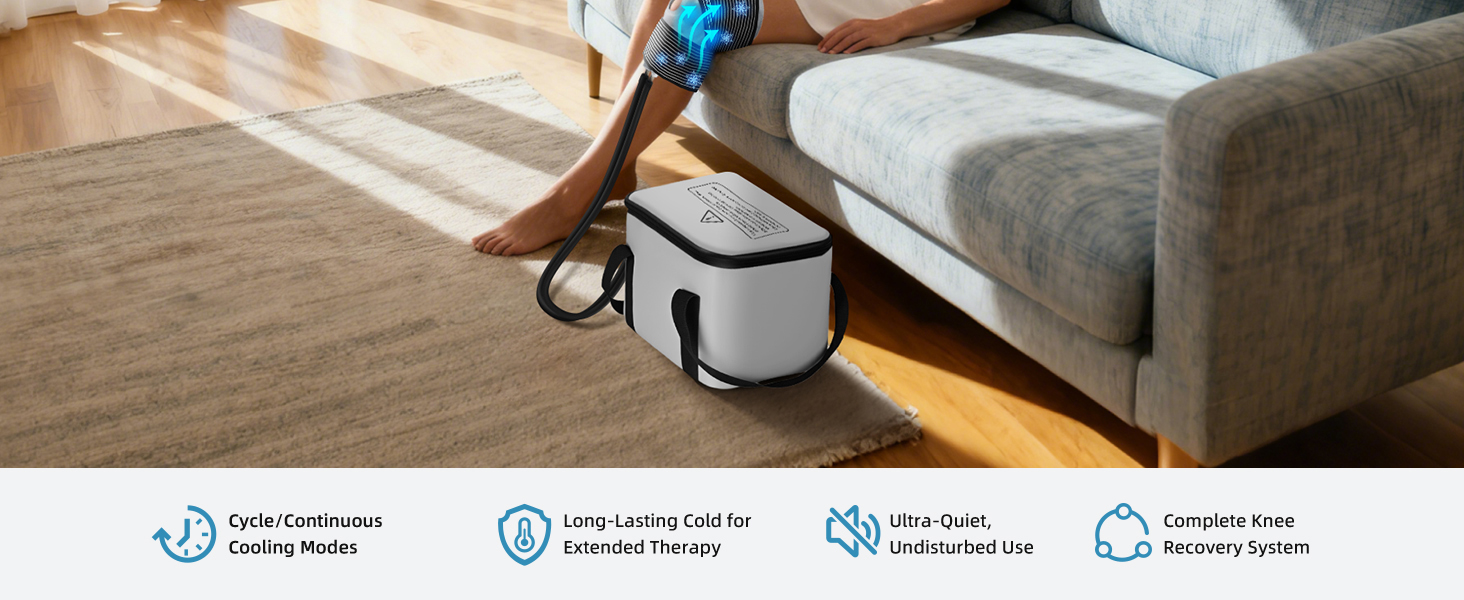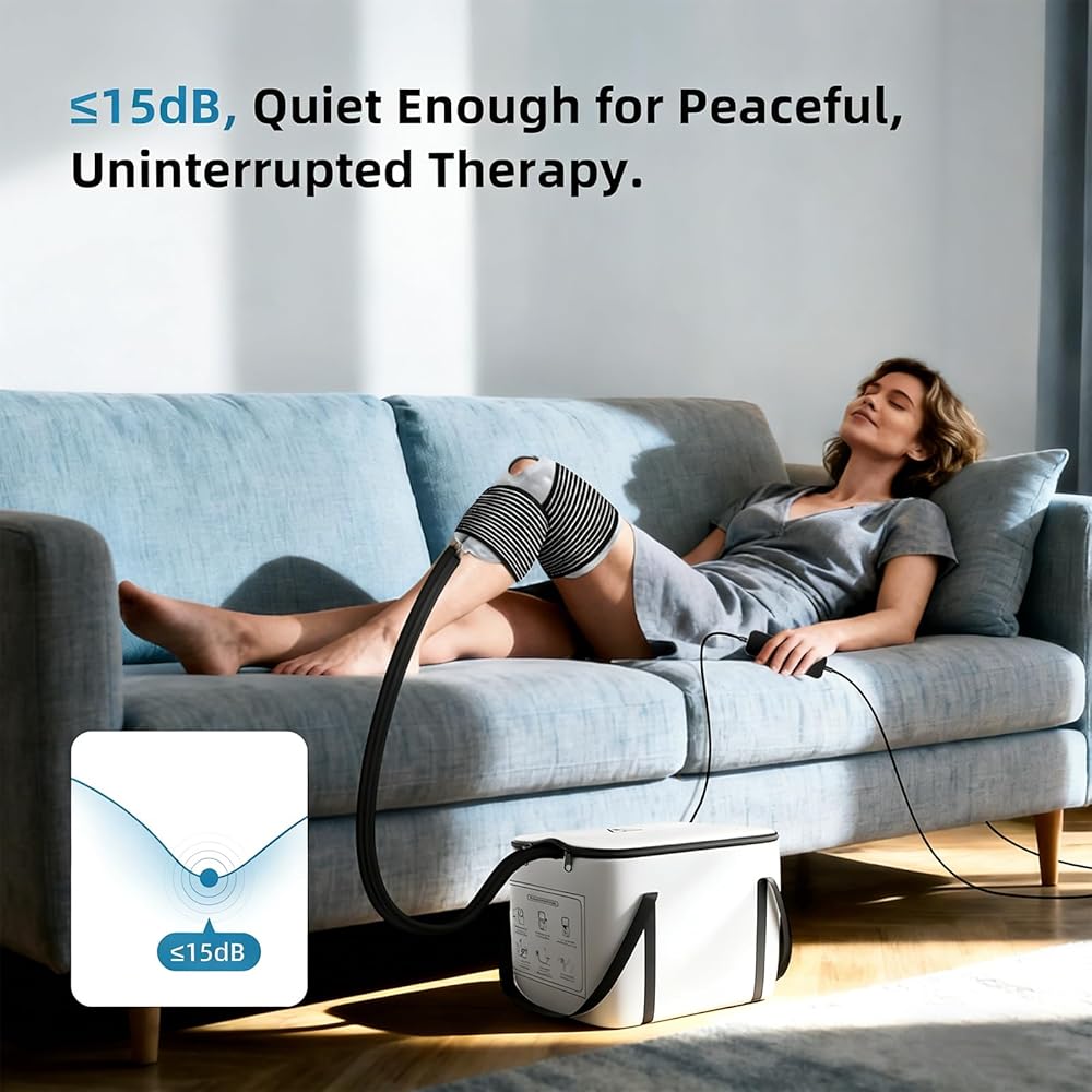 【علاج بارد فائق الهدوء】استمتع براحة غير مزعجة ليلاً أو نهارًا، وهو مثالي للنوم أثناء التعافي من تنظير المفاصل واستبدال الركبة! مجهزة بمضخة منخفضة الضوضاء ≥15 ديسيبل (أكثر هدوءًا من أوراق الشجر)، فهي تندمج بسلاسة في روتينك، سواء كنت تسترخي بعد الإصابات الرياضية أو تتعافي طوال الليل من جراحة استبدال الركبة. هادئ وفعال وغير تدخلي لكل سيناريوهات التعافي المريحة!