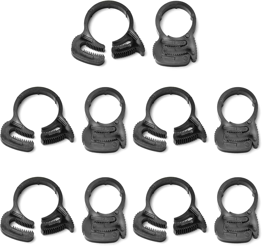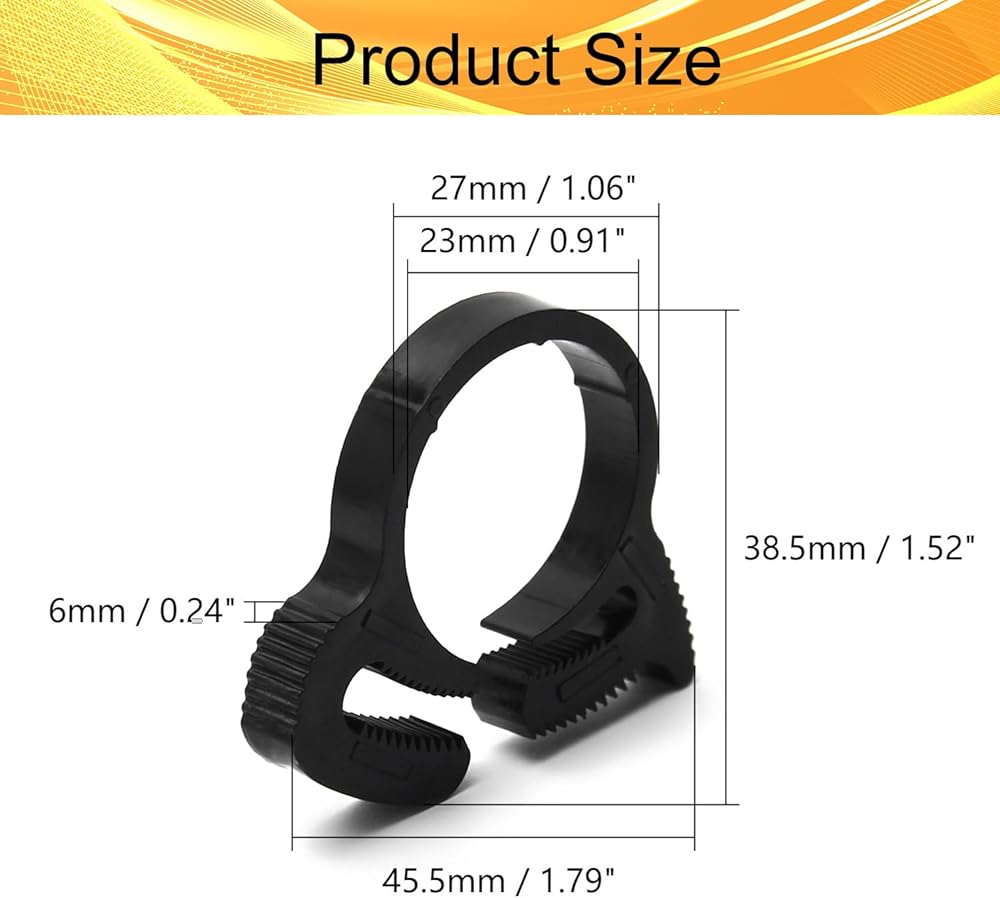 • 1.Specification:Fit Hose Diameter(OD): 19.6mm-21.6mm/0.77"-0.85"; Clamp Thickness: 6mm/0.24"'; Material: Nylon; Color: Black; Package Include: 10 Pieces.