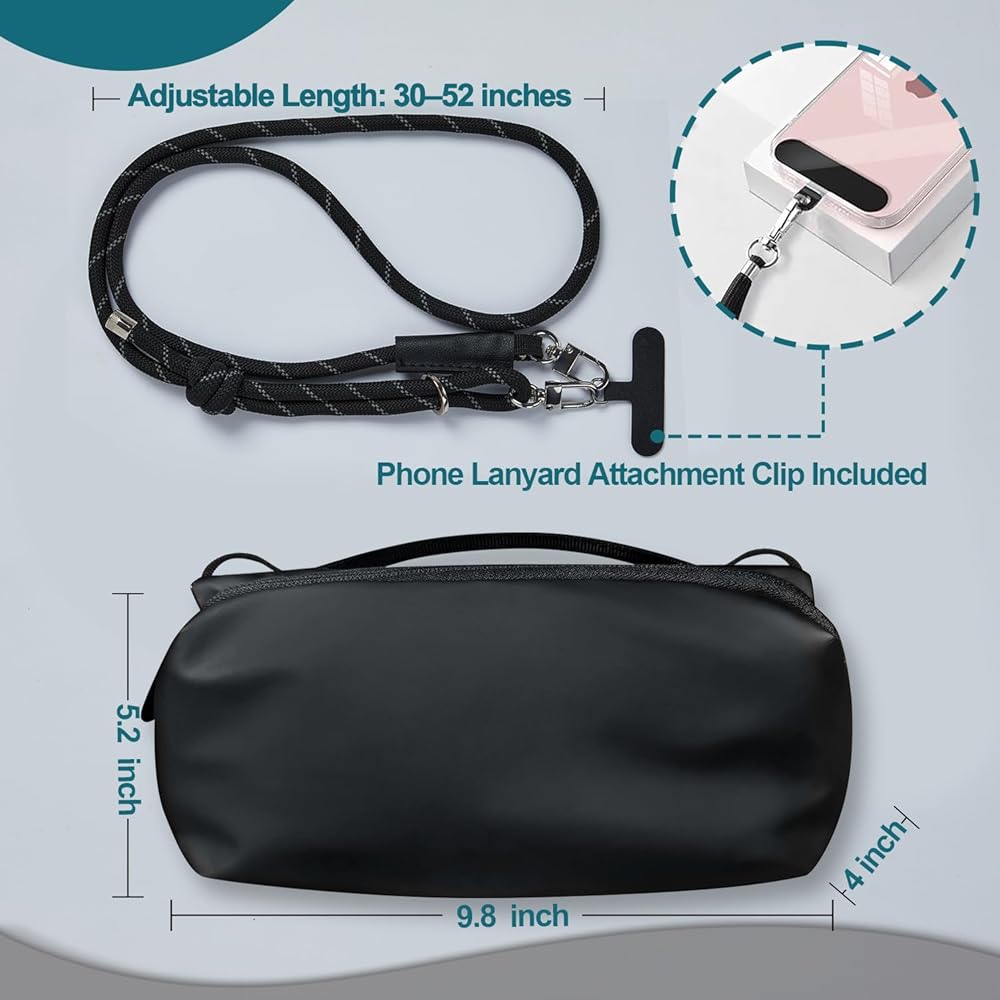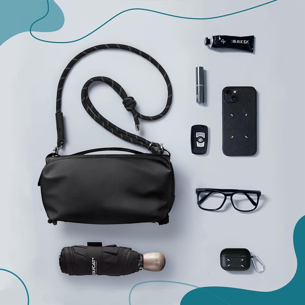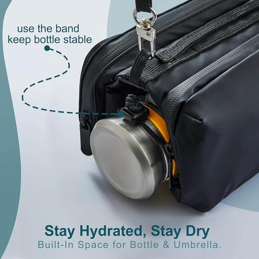 حجرة تخزين وترطيب مزدوجة الاستخدام: مصممة بشكل فريد مع زجاجة مياه مدمجة أو حامل مظلة، تجمع حقيبة الجسم هذه بين العملية والراحة. تضمن الحجرة المخصصة الوصول السريع إلى ضرورياتك مع الحفاظ على يديك حرتين للقيام بالمهام اليومية أو المغامرات الخارجية
