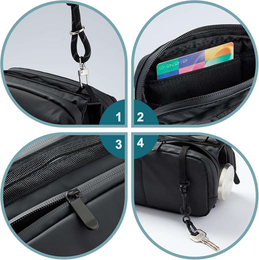 simptech حقيبة كروس مع حامل زجاجة فاني حزمة حبال الصدر حقيبة مزدوجة الجيب الرئيسي مقاومة للماء حقيبة الخصر للنساء الرجال السفر، الاستخدام اليومي، ركوب الدراجات، المشي لمسافات طويلة (أسود جديد)