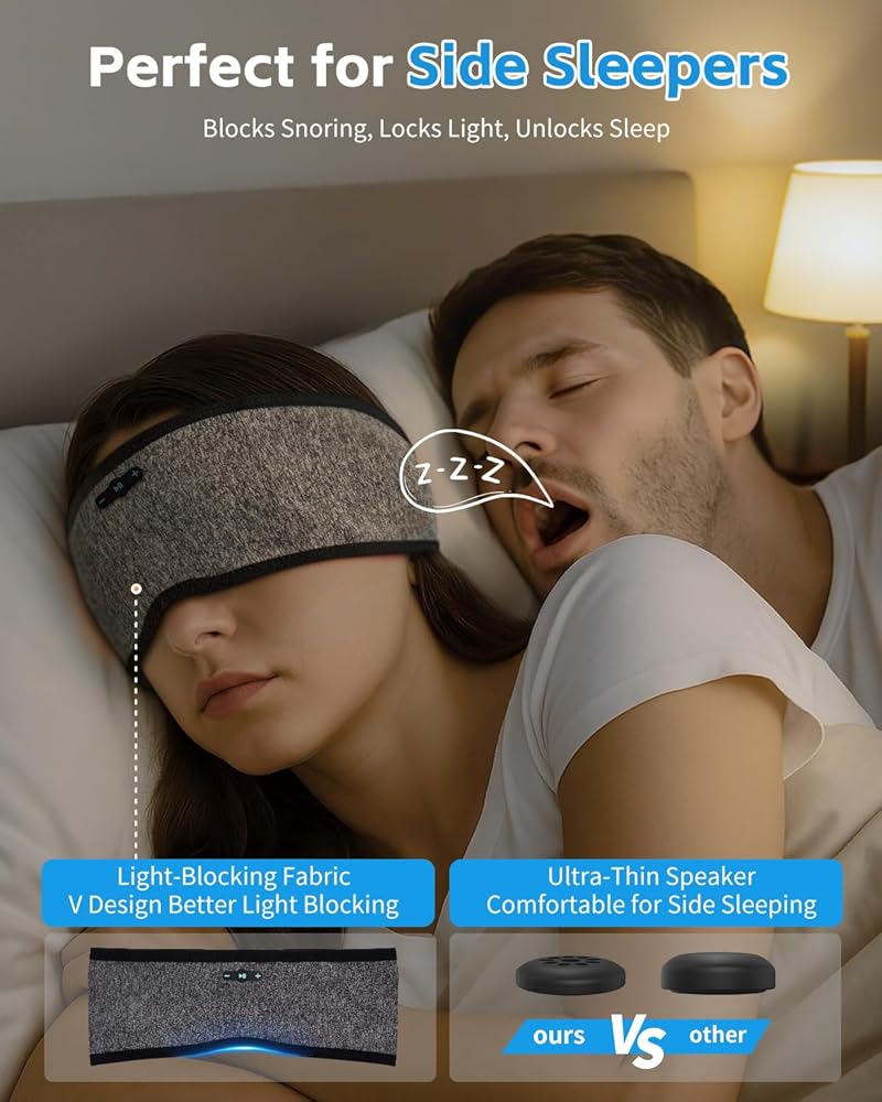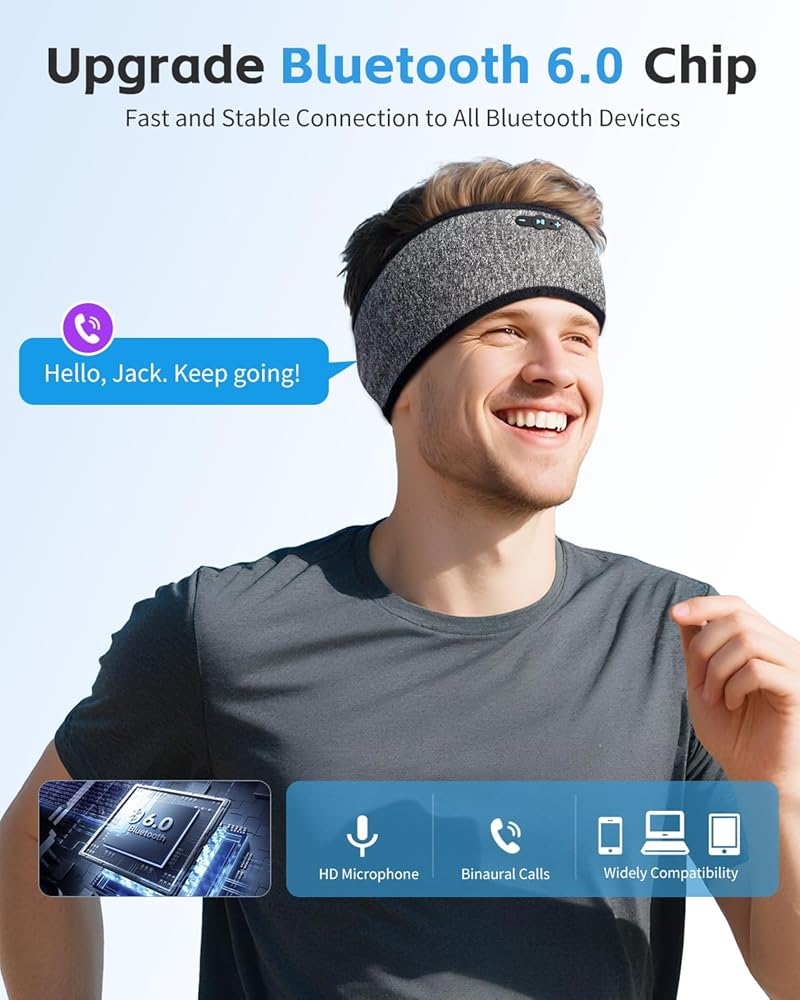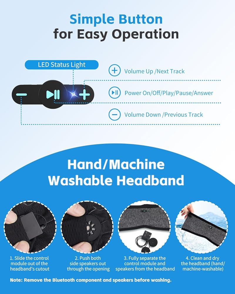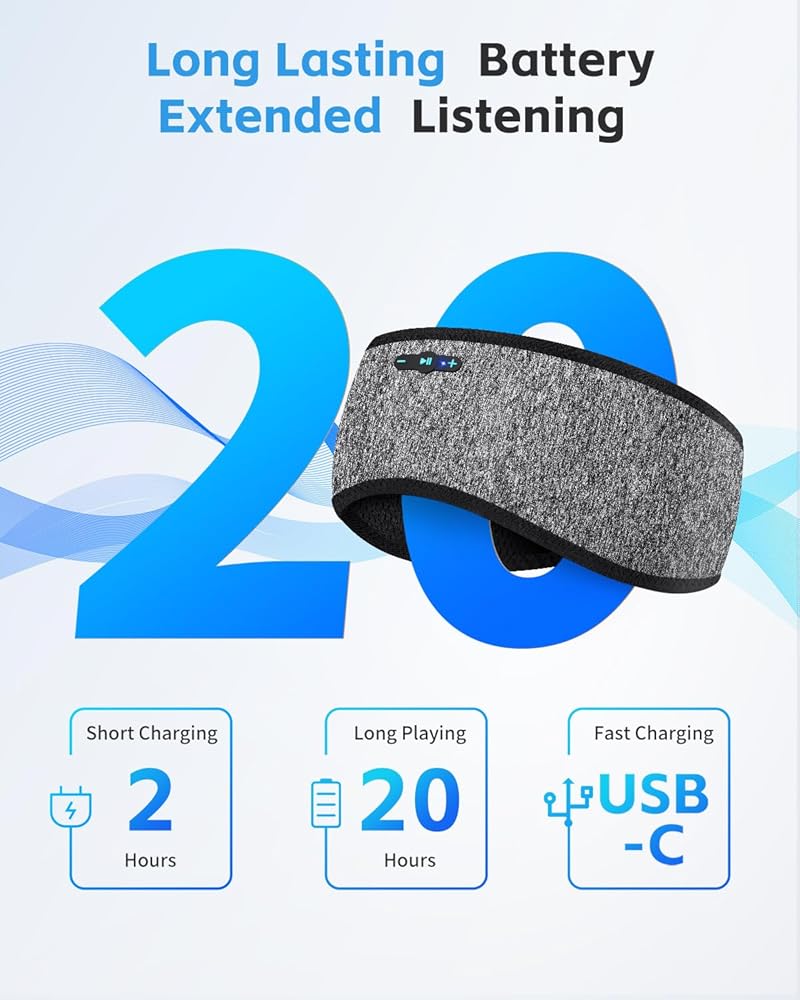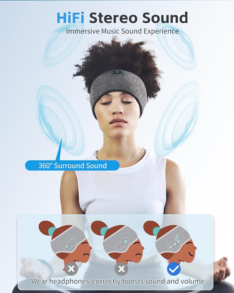 ملاءمة مريحة مع صوت واضح: توفر مكبرات الصوت اللاسلكية صوت ستيريو واضح مع البقاء مسطحًا داخل عصابة الرأس. مناسبة كسماعات للنوم لمن ينامون على الجانب وتساعد على تقليل الضغط على الأذنين.