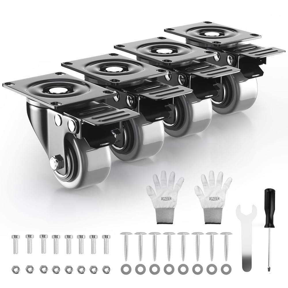• عجلات العجلات شديدة التحمل: مجموعة عجلاتنا المكونة من 4 عجلات شديدة التحمل مصنوعة من الفولاذ المطلي بالكهرباء من الدرجة الصناعية، وعجلات متينة من البولي يوريثين، باستخدام محامل كروية ثمينة، وحلقة إضافية مقاومة للغبار، مما يبقيها عمرًا طويلًا وتجعلها محمية من التآكل والصدأ.