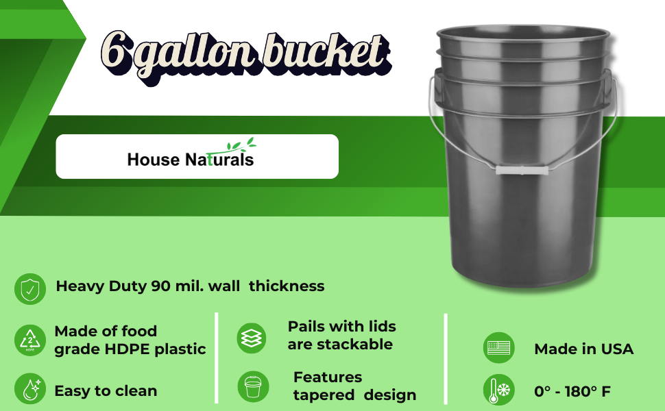 دلو بلاستيكي كبير من هاوس ناتشورالز سعة 6 جالون من البلاستيك بدرجة الطعام مع برغي محكم الغلق على الغطاء (عبوة من 3 قطع) مصنوع في الولايات المتحدة الأمريكية