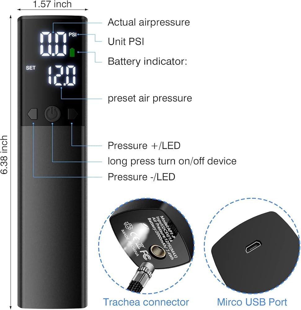 【Ultra-Portable Compact Design】Weighing only 0.55LB and sized at 6.29*1.57*1.57inch, the ball inflator fits easily in your pocket or sports bag. The included carry bag allows for on-the-go storage, so you'll never be caught with a deflated ball again. It also features built-in LED lights. enabling convenient use even in dark or low-light environments.
