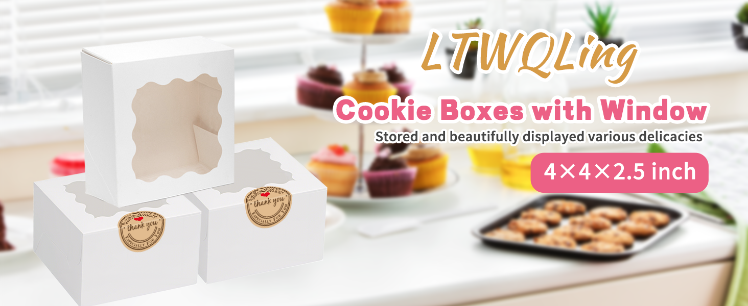 50 قطعة من علب البسكويت البيضاء من LTWQLing، 4 × 4 × 2.5 بوصة صناديق مخبز مع نافذة، مع ملصقات، للكيك الصغير، حلوى المعجنات، الكعك، المعكرون، الفراولة، حلوى الشوكولاتة