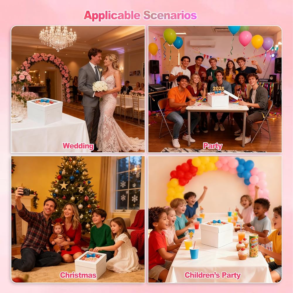 【متعددة الاستخدامات ومتعددة الأغراض】 مثالية لمجموعة متنوعة من المناسبات، بما في ذلك الكريسماس وحفلات الزفاف وأعياد الميلاد والحفلات والتخرج وعيد الأم وعيد الحب وعيد الشكر وغيرها من الاحتفالات. تعتبر هذه الصناديق أيضًا رائعة لمبيعات المخابز وتغليف الهدايا.