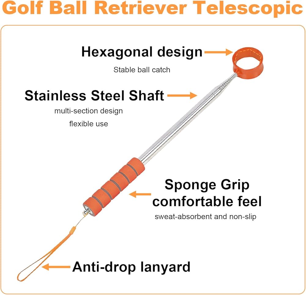مسترد كرة الجولف تلسكوبي، مسترد كرة الجولف بطول 9 أقدام للمياه، أداة مسترد كرة الجولف الاحترافية المصنوعة من الفولاذ المقاوم للصدأ، ممسك كرة جولف خفيف الوزن مزدوج الجوانب، هدايا إكسسوارات الجولف