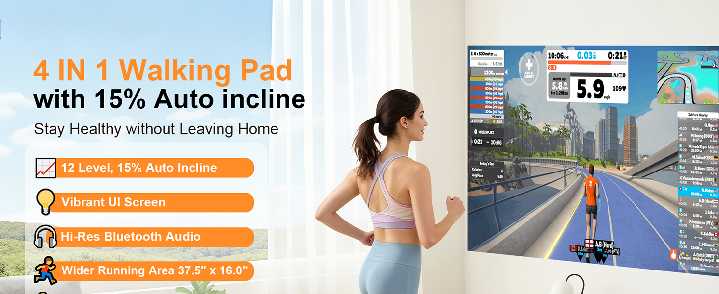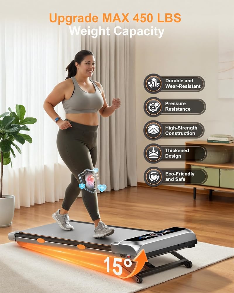 【سعة الوزن 450 رطلًا للخدمة الشاقة - مصممة لجميع الأحجام】تم تصميم جهاز المشي التلقائي هذا من أجل القوة والثبات، ويتميز بإطار فولاذي متين ومقوى. يدعم ما يصل إلى 450 رطلاً مع ميل تلقائي بنسبة 15% من 12 مستوى، وهو مناسب للمستخدمين من جميع الأحجام والأشكال. تشعر كل خطوة بالصلابة والثبات والأمان - لا تذبذب ولا اهتزاز، فقط ثقة تامة في كل خطوة. إنه مثالي للمستخدمين الذين يقدرون السلامة والقوة والأداء طويل الأمد في تدريباتهم اليومية.