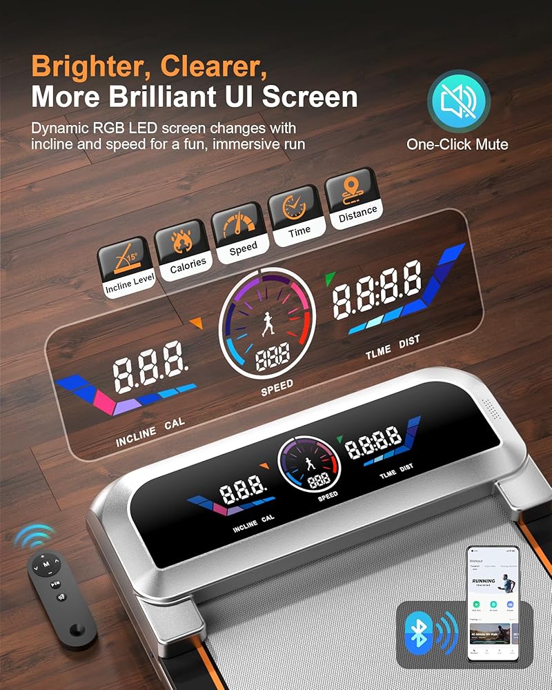 جهاز سير للمشي مع 15% 12 مستوى من الانحدار التلقائي وشاشة واجهة المستخدم، جهاز مشي Trisomy 3.5HP قابل للطي تحت المكتب مع مكبر صوت بلوتوث، أجهزة مشي محمولة للمكتب المنزلي 450 رطل، جهاز تحكم عن بعد، ضوء RGB