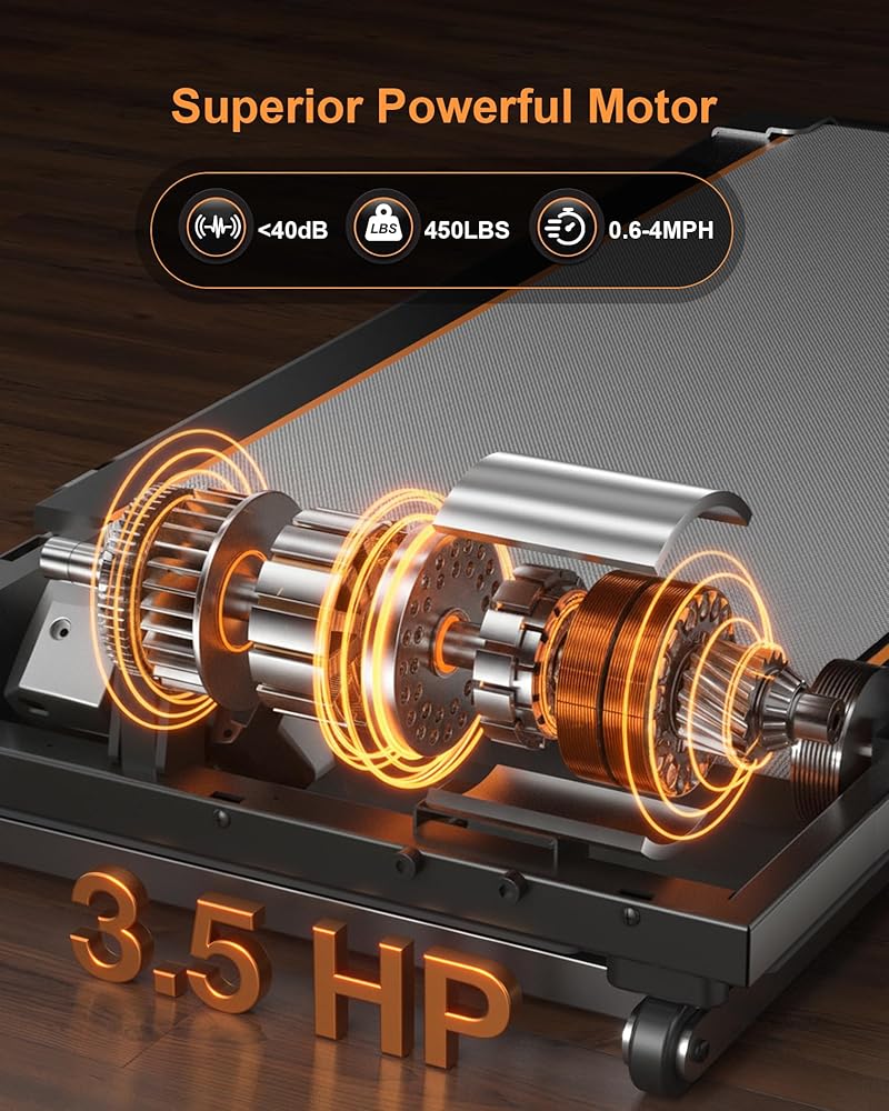 محرك هادئ قوي بقوة 3.5 حصان - تشغيل أكثر سلاسة مع ضوضاء أقل - تتميز وسادة المشي ذات الميل بمحرك قوي وصامت بقوة 3.5 حصان، مما يضمن التشغيل السلس والمستقر. وهو يدعم ما يصل إلى 18000 ساعة من عمر الخدمة، مما يسمح بجلسات تمرين طويلة الأمد. يوفر جهاز المشي المائل ركضًا سلسًا مع الحفاظ على الضوضاء أقل من 35 ديسيبل، مما يجعله مناسبًا للاستخدام في المنزل والمكتب.