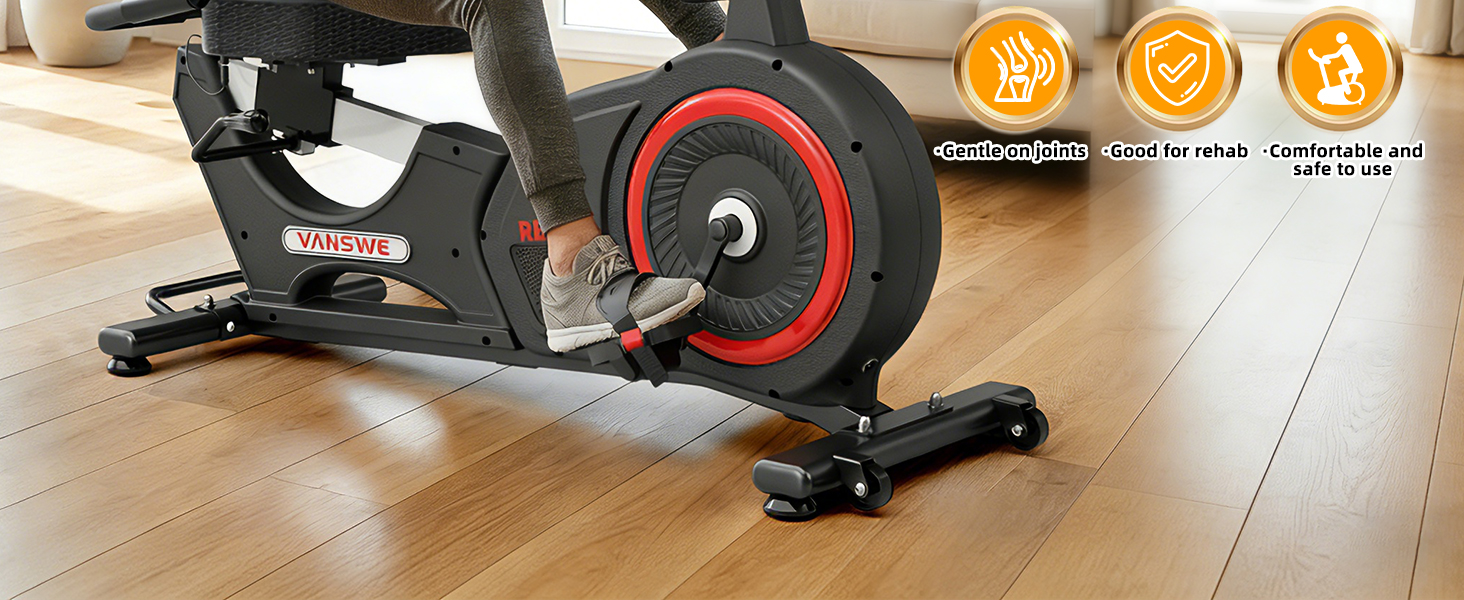 【90% Pre-Assembled for Stress-Free Setup】Skip the frustration of complex assembly, this exercise bike for seniors arrives 90% pre-assembled with all necessary tools and clear step-by-step instructions included. Equipped with convenient transportation wheels, the VANSWE recumbent exercise bike can be easily moved between rooms. Its compact design and built-in tablet holder offer a practical solution for modern home gyms, making it easy to store or relocate when needed.