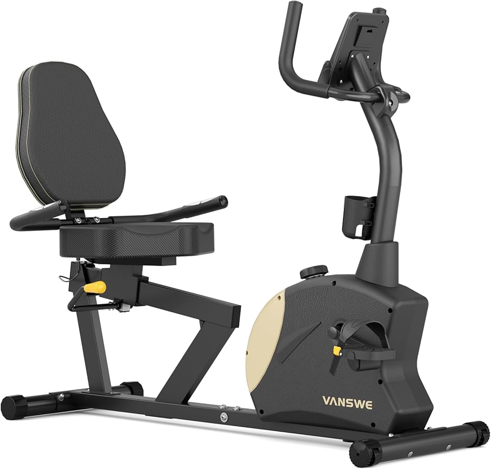 VANSWE Recumbent bikes can make a perfect addition to a home exercise set-up for adults and seniors. It makes less noise, provide low-impact cardio for all ranges of fitness levels.This Vanswe Recumbent Exercise Bike allows you to program your workout goals inside your home. Customize your workout with its 8 levels of smooth magnetic resistance. The weight capacity is 400 lbs and it comes equipped with an ultra-functional LED computer screen to track heart rate, speed, distance, time, calories burned and odometer. Numbers displayed really large and clear for great readability. Ergonomic designed thick and soft seat and backrest ensures correct posture and comfort.