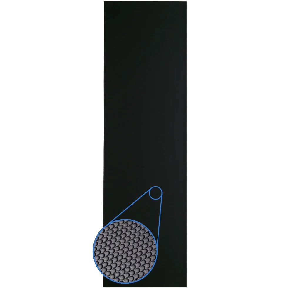 Flicks like sandpaper but won't rip your shoes. This Non-Abrasive rubber griptape measures 9" x 33". While sandpaper uses abrasion, DKL Griptape uses frictional forces such as molecular adhesion and the plow effect and is similar to the rubber found on ping pong paddles. DKL Griptape won't rip your shoes because it's made from rubber.