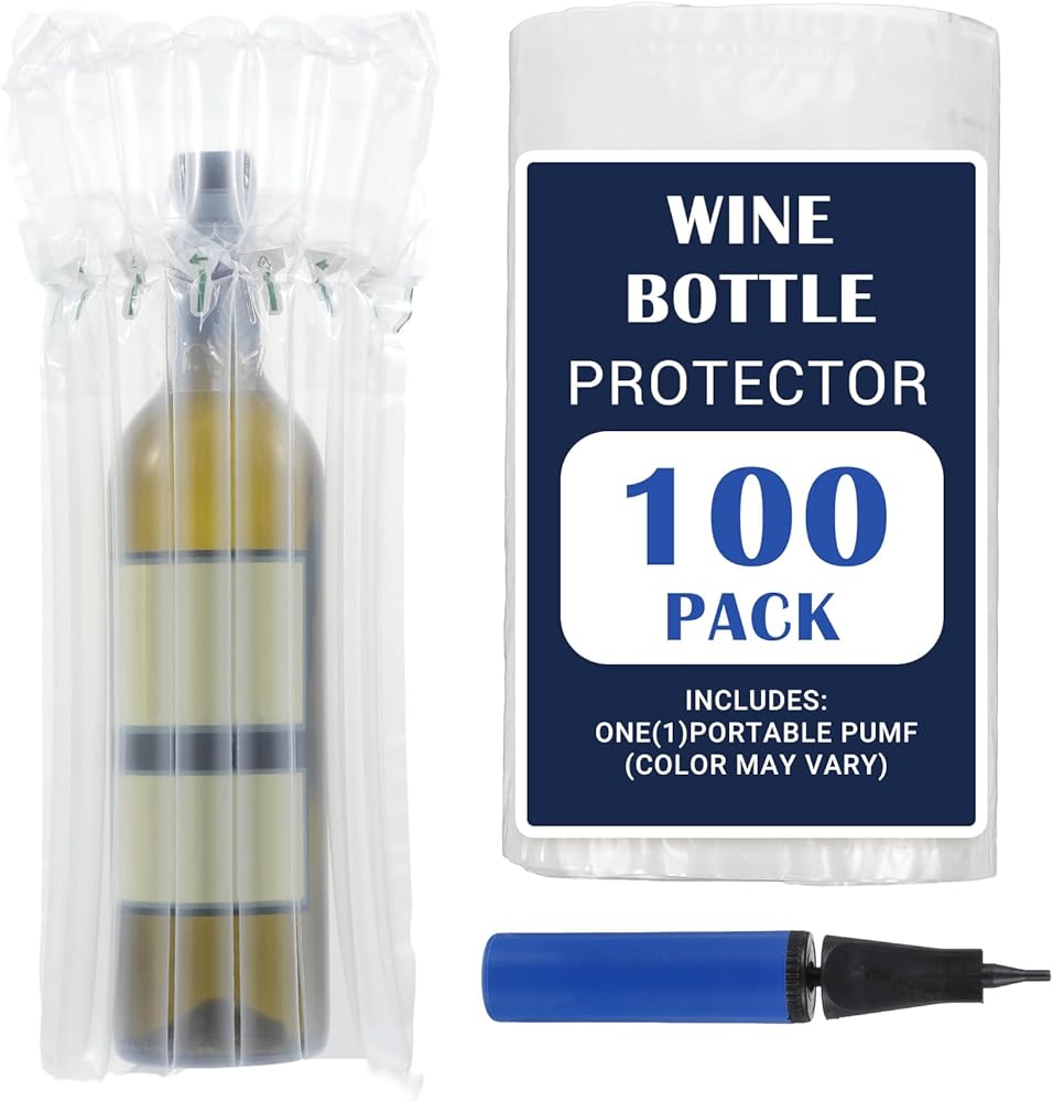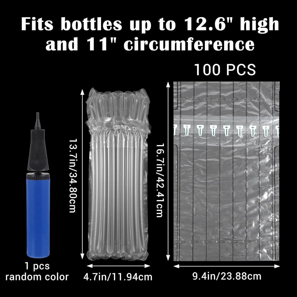 • 【100 Packs Complete Set】This wine bottle travel protector bags kit includes 100 inflatable protective sleeves and 1 reusable air pump (random color). Get everything you need for immediate use—no extra purchases required. Perfect for securing multiple bottles during moves, trips, or gifting.