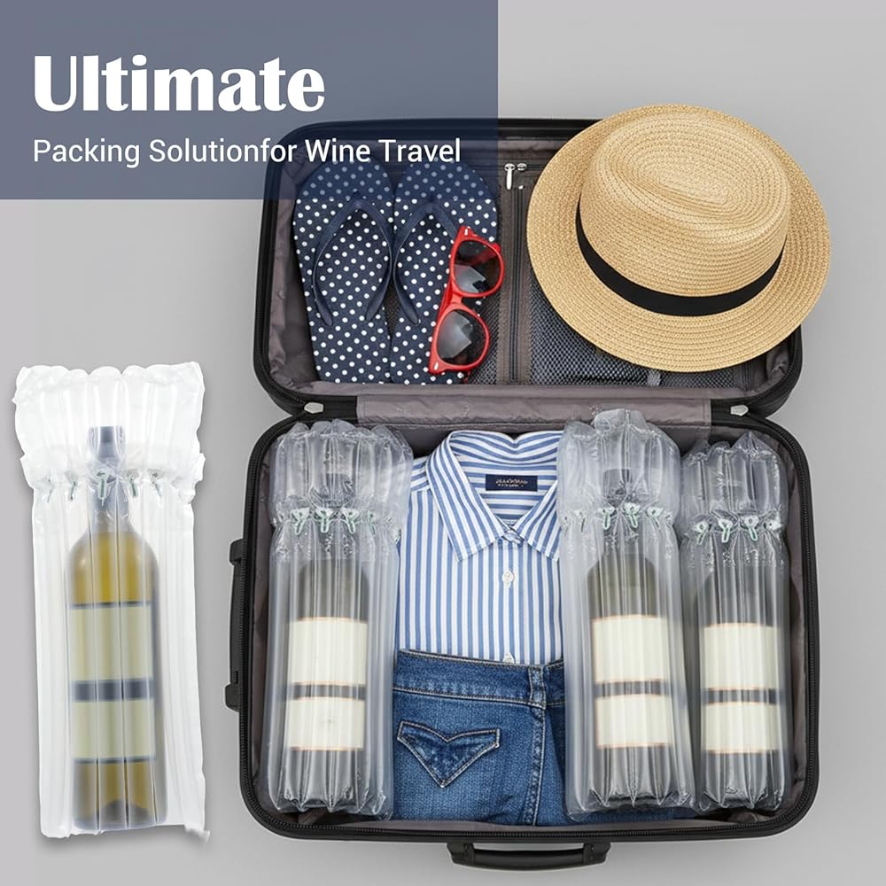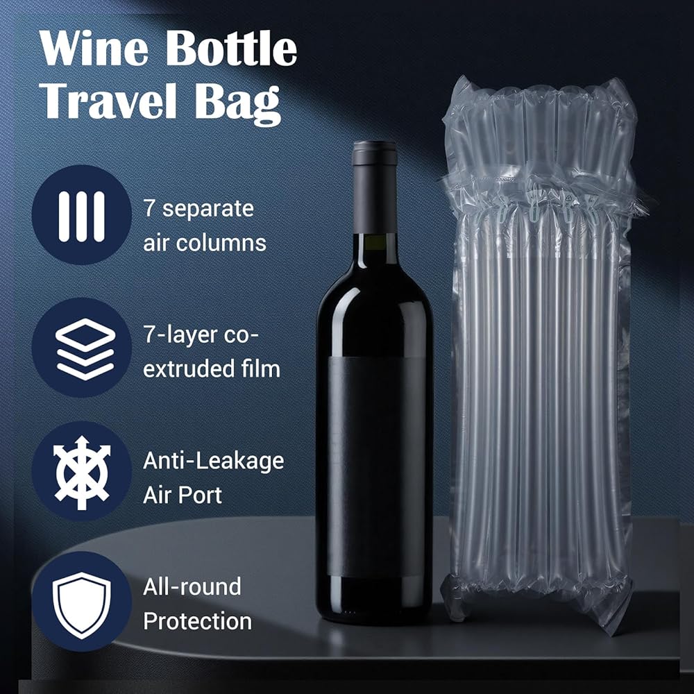 Ensure your favorite beverages arrive intact with our 100-pack wine bottle travel protector bags set, complete with an air pump. Each travel wine bottle protector features 7 independent air columns for maximum shock absorption. Designed for convenience, these wine travel bags for wine bottles airplane offer a secure fit for standard bottles. Ideal as wine protector bags for travel, they are reusable and perfect for flights, road trips, or shipping. This reliable wine travel protector safeguards against breaks and leaks. Trust these wine bottle protectors for air travel to keep your items safe. Durable and practical, these wine sleeves for travel are a must-have for any journey.