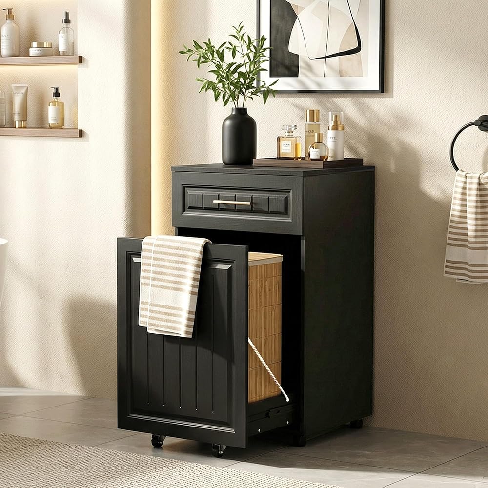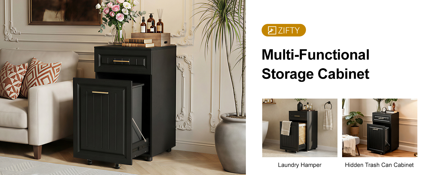 [أنيقة وعملية]: بفضل خشبها الأسود الأنيق وخطوطها النظيفة، تجمع خزانة القمامة القابلة للسحب هذه بين العملية وجماليات الديكور المنزلي. يمتزج بسلاسة مع المطابخ وغرف الغسيل وغرف الطعام وغرف المعيشة والحمامات، كما أنه مثالي للمساكن والشقق.