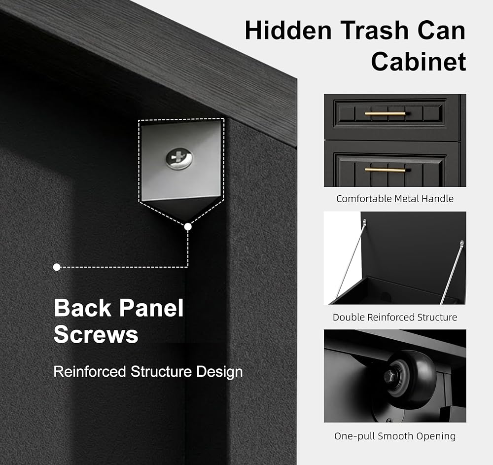[تخزين القمامة المخفي]: احتفظ بسلال المهملات بعيدًا عن الأنظار. يمنع هذا التصميم المغلق الحيوانات الأليفة من التنقيب في القمامة ويمنع الروائح الكريهة بشكل فعال، مع الحفاظ على المساحة الخاصة بك نظيفة ومنظمة ورائحة منعشة.