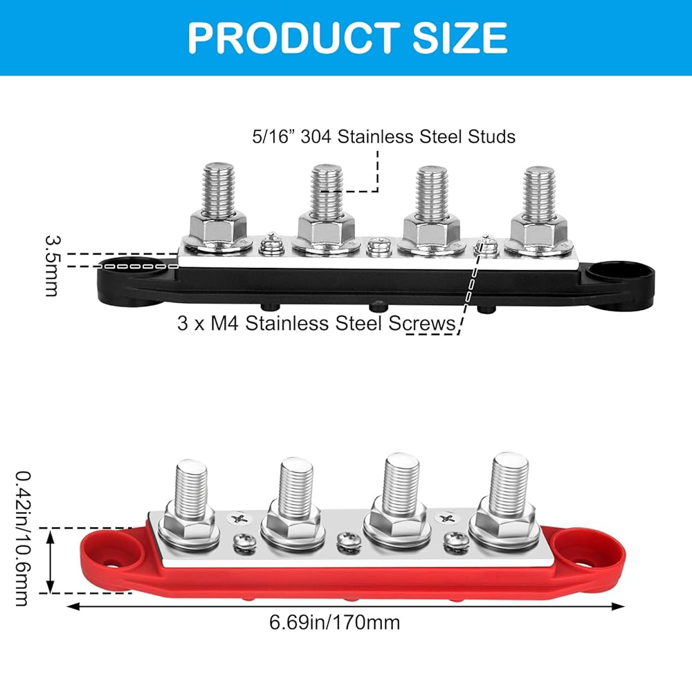• 【Heavy-Duty 5/16" Stud Terminals】 - Features 4 x 5/16" stud terminals and 3 x #8 screw terminals to accommodate large-size wire connectors securely