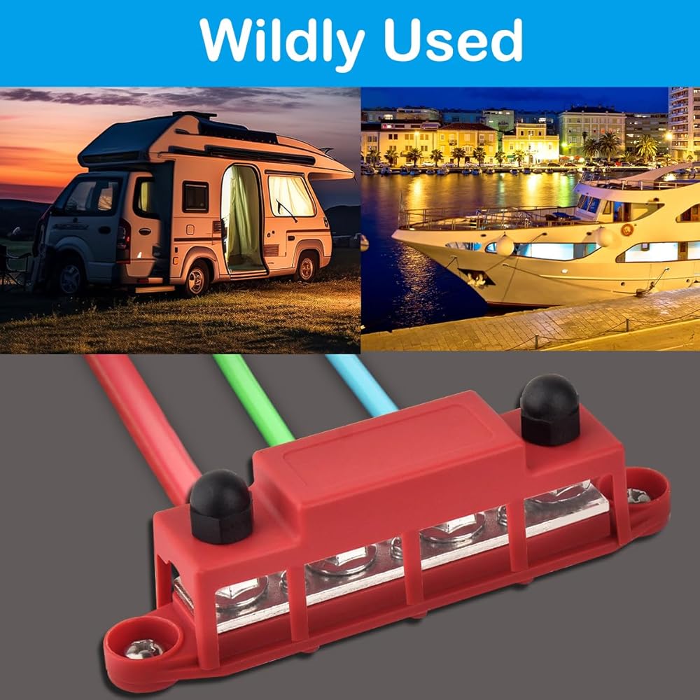 Tinned copper plates and stainless steel hardware resist rust in humid/salty environments.Perfect for 12V/24V/48V systems in automotive, solar, marine, and RV applications.