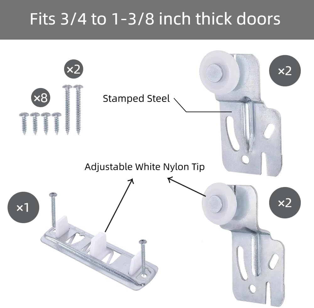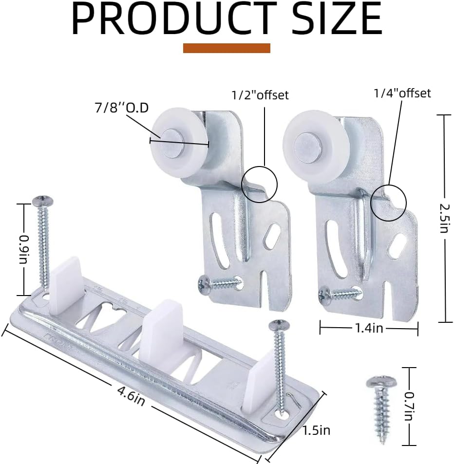 【Universal Size Compatibility】Designed to fit a wide range of door thicknesses from 3/4" to 1-3/8". The rollers feature a 1/2" inside offset and 1/4" outside offset. Always verify your door dimensions before ordering to ensure a proper match.