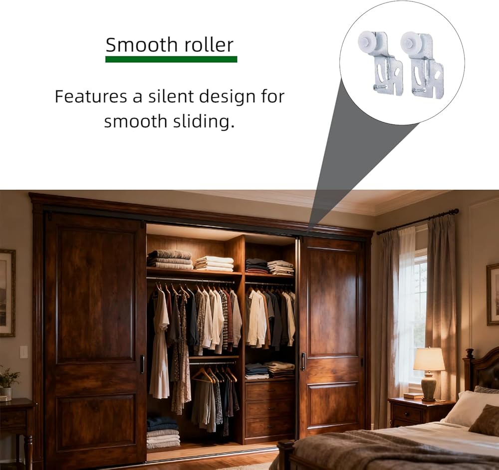 【Smooth & Quiet Glide】Engineered with a noise-reducing design, these closet door rollers operate smoothly and quietly. Enjoy a peaceful home environment without the disturbance of squeaky or grating door sounds.