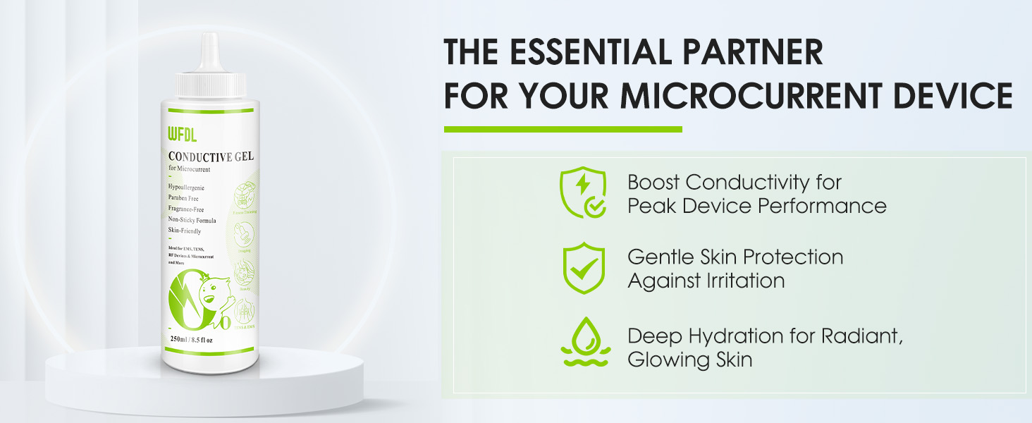 يعزز التوصيل ويحمي البشرة: يعزز هذا الجل الموصل فعالية EMS وأجهزة التيار الدقيق عن طريق تحسين التوصيل الكهربائي. غني بالجلسرين لضمان بقاء البشرة رطبة حتى بعد العلاج. كما أنه يشكل حاجزًا وقائيًا لتقليل التهيج أو الحرق أو تلف الجلد.