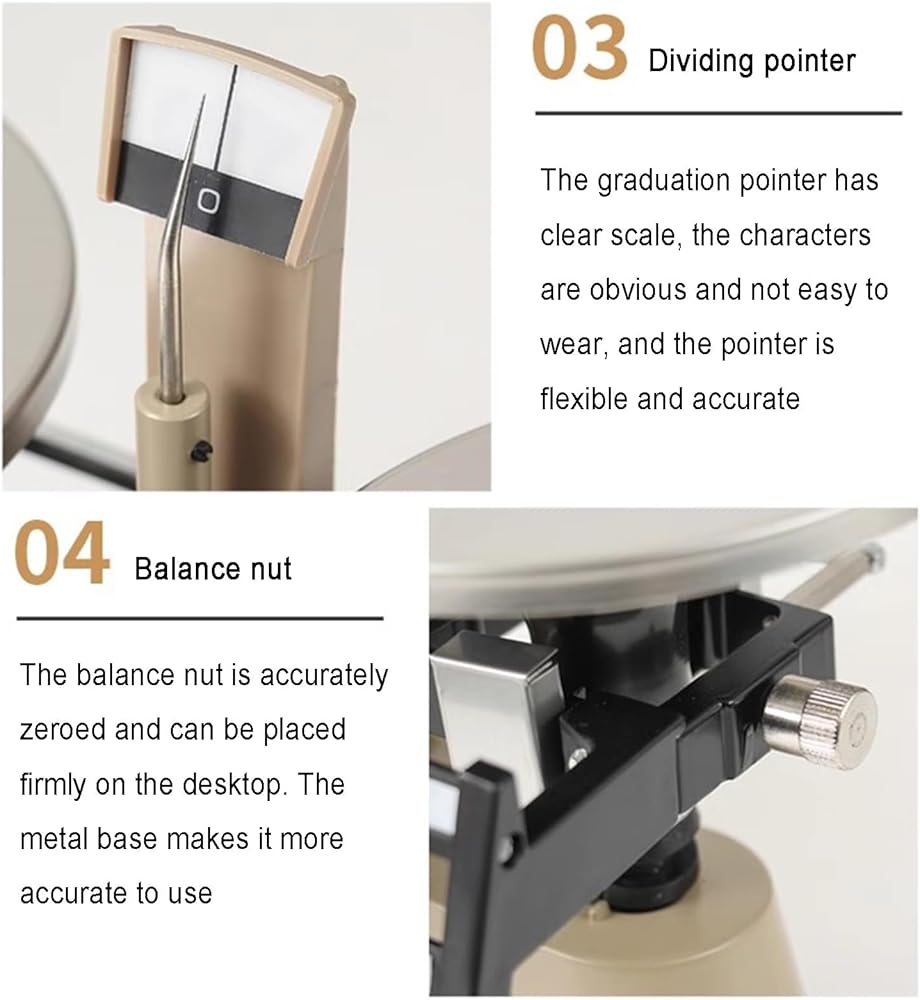 • Mechanical Balance: Mechanical balance, you can easily get the weighing result at any time according to your need; carefully selected steel beam, not easy to deform. Equipped with 4 weights (1kg, 500g, 200g, 100g)