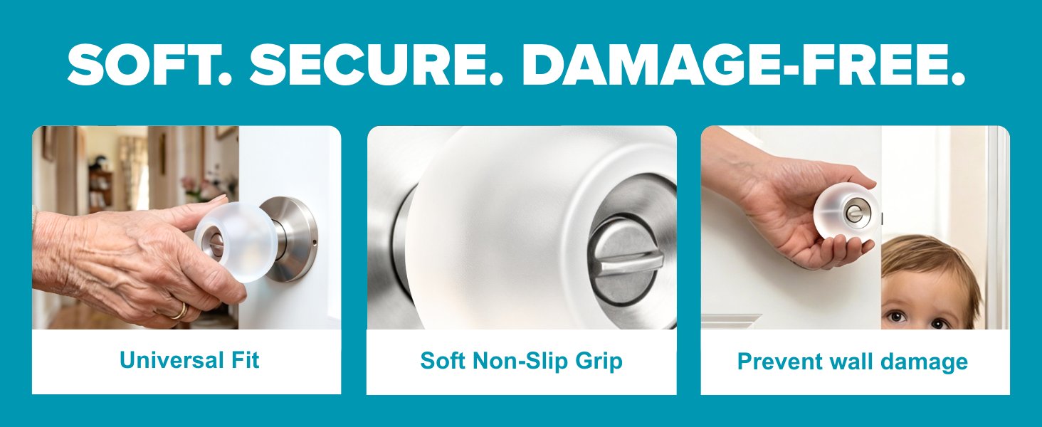 مقبض عالمي سهل التركيب: قم بتمرير غلاف السيليكون المبطن على الفور فوق أي مقبض دائري قياسي أو مقبض باب بيضاوي. تبقى المقبض الآمن الذي يشبه الشفط ثابتًا في مكانه دون الحاجة إلى أقفال أو ألواح معدنية أو أجهزة بلاستيكية إضافية. يستغرق التثبيت ثوانٍ فقط - ما عليك سوى دفع الغطاء على مقبض الباب الخاص بك للحصول على ملاءمة محكمة ومقاومة للانزلاق ولن تنزلق أثناء الاستخدام اليومي.