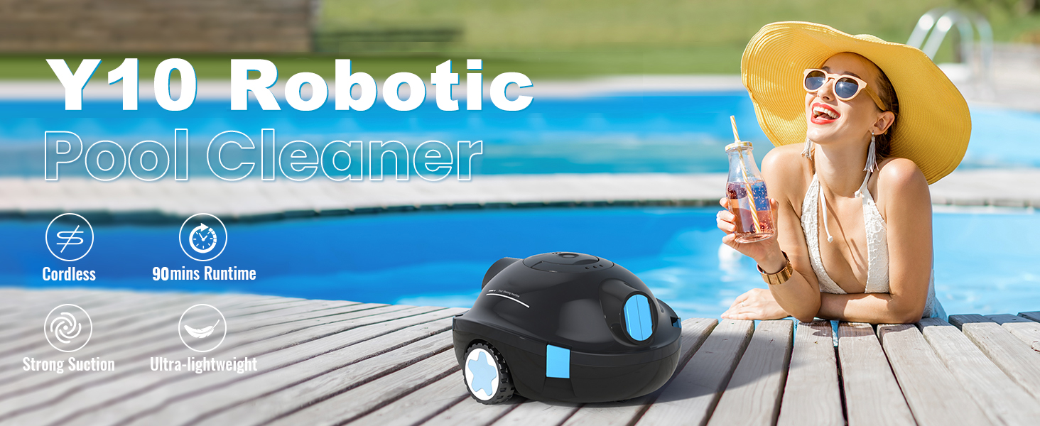 منظف ​​حمام السباحة الآلي اللاسلكي Y10، مكنسة حمام السباحة الأوتوماتيكية - وقت تشغيل 90 دقيقة، شفط قوي، ركن ذاتي، خفيف الوزن لحمامات السباحة العلوية/الأرضية حتى 65 قدمًا/1100 قدم مربع (فحم) in Kuwait