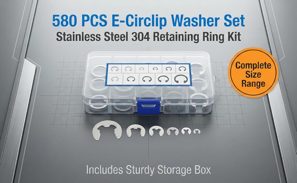 [مجموعة شاملة مكونة من 580 قطعة] تتضمن مجموعة الغسالة الدائرية E الواسعة هذه 580 قطعة تغطي الأحجام من M1.5 إلى M10 (100x M1.5 M2 M2.5 50x M3 M3.5 M4 M5 M6 20x M8 10x M10) للتعامل مع أي احتياجات تثبيت تقريبًا. يضمن نطاق الحجم الكامل حصولك دائمًا على الغسالة المناسبة للمشاريع التي تتضمن إصلاحات السيارات والآلات الإلكترونية وصيانة المعدات الصناعية.